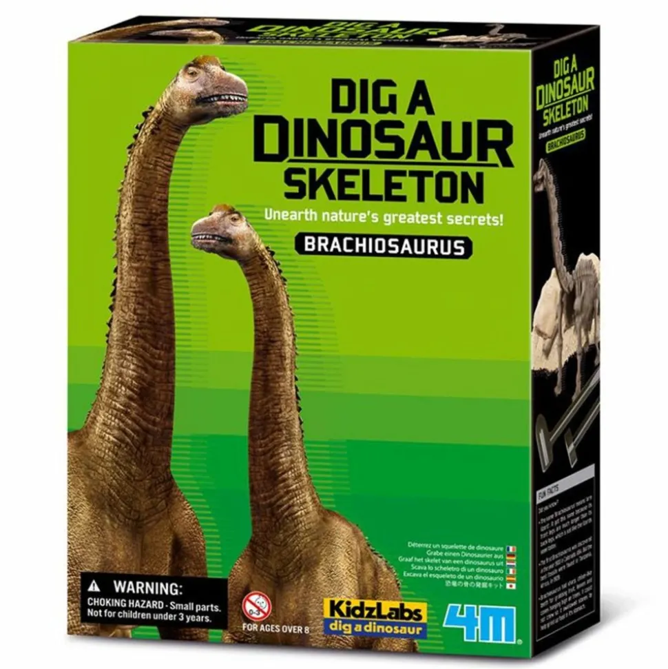 Kit éducatif 4M Kidzlabs : Déterre ton Brachiosaure. Amateur de paléontologie, déterre ton squelette de Brachiosaure sans plus attendre ! Les os des dinosaures sont enfouis depuis plusieurs millions d’années, trouve et assemble toutes les pièces pour recréer le Brachiosaure, célèbre herbivore de la période jurassique ! Le kit contient un outil de fouille spécial dinosaure,ainsi qu’un décor amusant. Dimensions boîte : 22 x 18 x 6 cm. Âge à partir de : 8 ans. Attention : Ce kit ne convient pas aux enfants de moins de 3 ans, les petites pièces peuvent être la cause d’un étouffement.