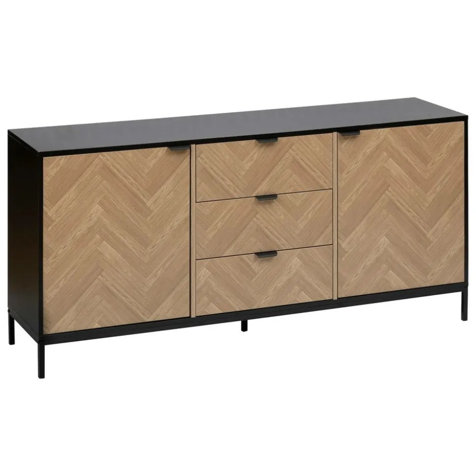 Buffet « Chevrons » 2 portes 3 tiroirs effet pin naturel 160x75cm