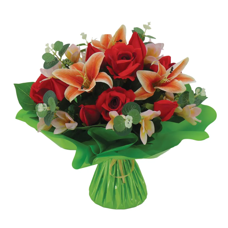 Très en vogue, les bouquets de fleurs artificiels sont de plus en plus beaux et d’un réalisme à s’y méprendre. Autrefois, toutes en plastique ; elles sont davantage en textile aujourd’hui (principalement tergal et polyester) : ce qui leur confère une finition irréprochable et un toucher plus agréable, plus doux et moins froid. Quel plaisir de posséder chez soi et tout au long de l’année des plantes exotiques, des fleurs hors saison ou des bouquets plus vrais que nature et ce, quels que soient le climat, la luminosité ou l’absence d’entretien. Et oui, les plantes artificielles sont impérissables ! Fleurs artificielles – bouquet rouge bulle H.40 D.45cm.