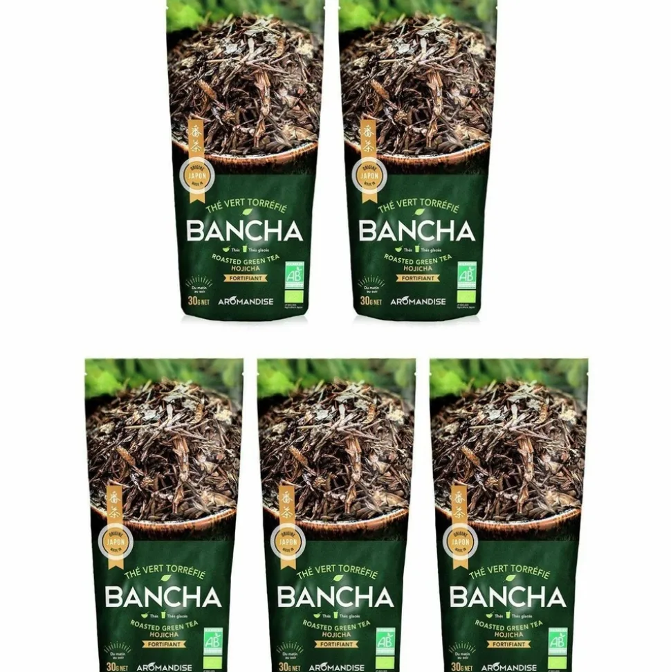 Le thé vert torréfié Bancha Hojicha soutient le système immunitaire et renforce les capacités physiques et mentales. En grillant, le Bancha Hojicha prend une teinte brune et un arôme boisé très agréable. Il est excellent pendant les repas, particulièrement avec du poisson. Thé très désaltérant et léger en théine, il est idéal le soir. Liqueur : Texture en bouche : lisse, presque aqueux. Saveurs : sucrée. Arômes : attaque marine, mais aussi très fruitée (confiture de mûre), pyrogénée (pain grillé), boisée (bois sec). Profil aromatique et longueur en bouche : aromatique, avec des notes franches. Doux en bouche, grâce à une texture très lisse, presque aqueuse, et à la saveur sucrée. Préparer ce thé glacé : Infuser 8 g de thé par litre d’eau froide pendant 1 heure. Retirer les feuilles et placer au frais. Accord ‘Thé et Mets’ : Le Bancha Hojicha s’accorde parfaitement en entrée avec du saumon fumé. Pour les amateurs de fromage, ce thé se marie idéalement avec des fromages à pâte molle comme un Pont Levêque, un Brie, ou un Camembert. Le thé japonais est exclusivement du thé vert. Contrairement aux autres thés verts, le thé vert japonais subit une torréfaction spéciale, avec de la vapeur d’eau. Les principaux thés japonais sont les Sencha, Bancha, Tamaryokucha et Gyokuro. Certains thés du Japon sont préparés avec un luxe de soins dont seuls les japonais sont capables. 5 sachets de 30 g.