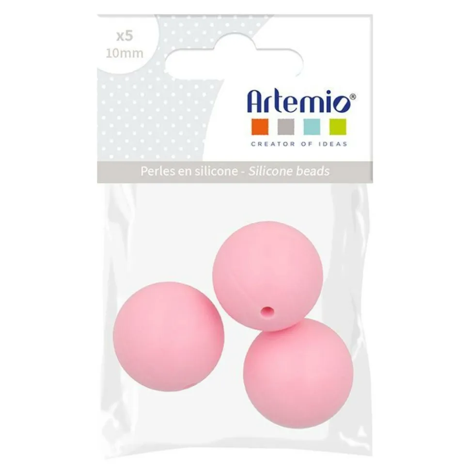 Sachet de 3 perles rondes en silicone rose – 15 mm. Avec ces perles de silicone, vous pouvez fabriquer des accessoires (pendentifs, colliers) à mâcher pour votre bébé. Les perles de silicone aident au développement des dents.