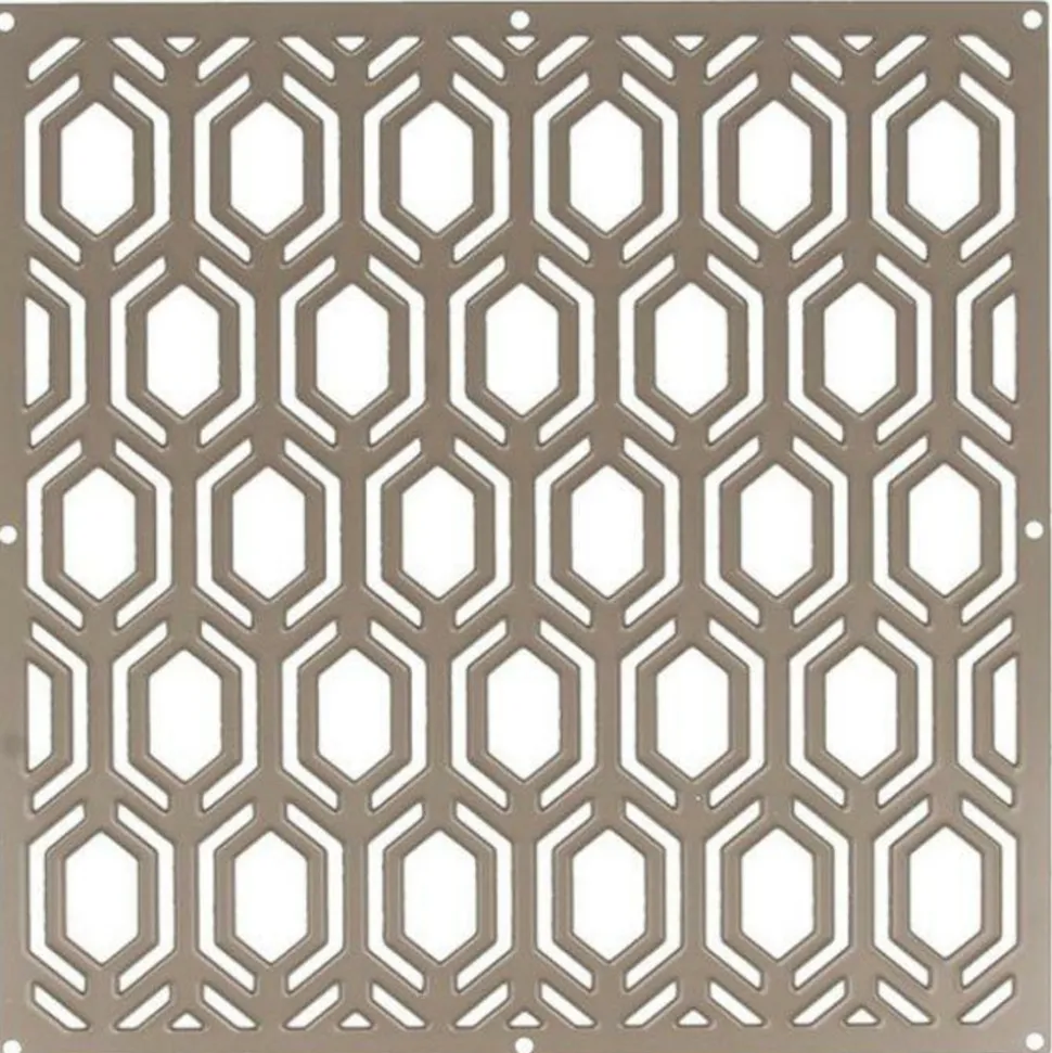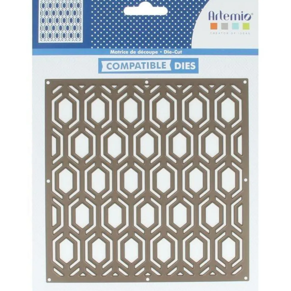 Gabarit pour machine de découpe Hexagones Cette matrice de découpe permet de créer plusieurs fois le même format sur les supports souhaités : tissu, cuir, plastique fou, vinyle, plastique, carton, feutrine ou même métal. Cette matrice représentant une série d’hexagones allongés à double contour est compatible avec la plupart des machines de découpe. Dimensions du motif : 15 x 15 cm. Mode d’emploi : Placez une plaque de découpe sur le plan de travail, placez la matrice de découpe par dessus. Puis placez votre papier cartonné (ou autre matériau). Placez votre deuxième plaque de découpe par-dessus. Puis mettez l’ensemble sur la machine (par exemple une machine de découpe Big Shot (vendue séparément), tournez la manivelle dans le sens des aiguilles d’une montre pour faire rouler l’ensemble à travers la machine. Récupérez le tout à l’autre extrémité de la machine, et récupérez votre papier cartonné, taillé au format voulu. Vous n’avez plus qu’à le détacher doucement.