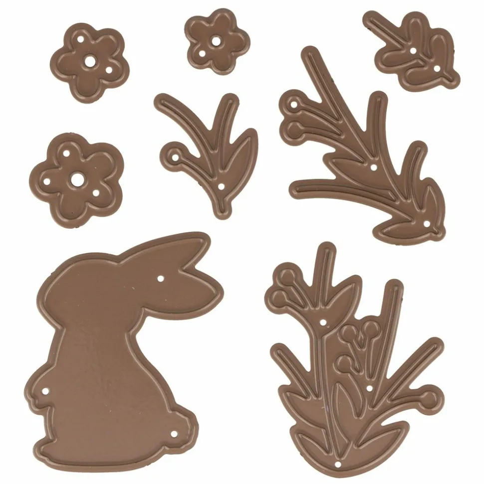 Créez de magnifiques dies-cut avec cette matrice en forme de joli petit lapin et de végétaux. Idéale pour Pâques, cette matrice vous permettra de confectionner de jolies formes en papier afin de décorer n’importe quel support. Dimensions plante n°1 : 3 x 1.5 cm. Dimensions plante n°2 : 3.1 x 2.9 cm. Dimensions plante n°3 : 5.1 x 4.1 cm. Dimensions plante n°4: 5.4 x 4.6 cm. Cette matrice est compatible avec la plupart des machines de découpe ( Sizzix, ScanNcut, etc ) que ce soit des formats minis ou A5.