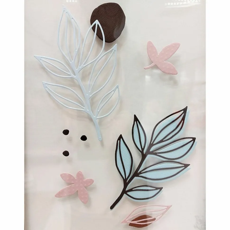 Dies Slow Life feuilles Série ‘Slow Life’ de la marque belge Artemio. Parfaites pour décrorer vos créations sur le thème végétal, ces deux matrices peuvent s’utiliser séparément ou se superposer pour créer du relief. Dimensions des matrices : branche avec feuilles ouvertes : 8,3 x 13,8 cm, branche avec feuilles pleines : 8,3 x 13,8 cm. Compatibles avec toutes les marques de machines à découper : Sizzix, HappyCut, etc.