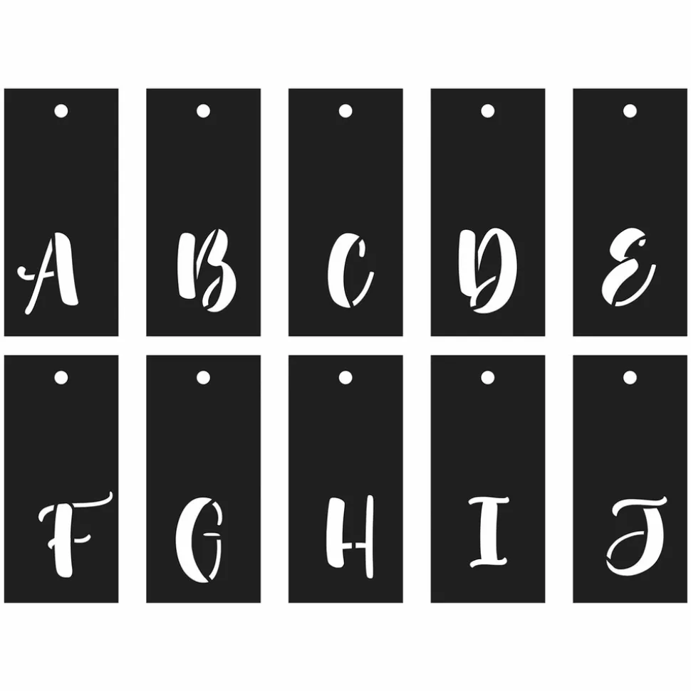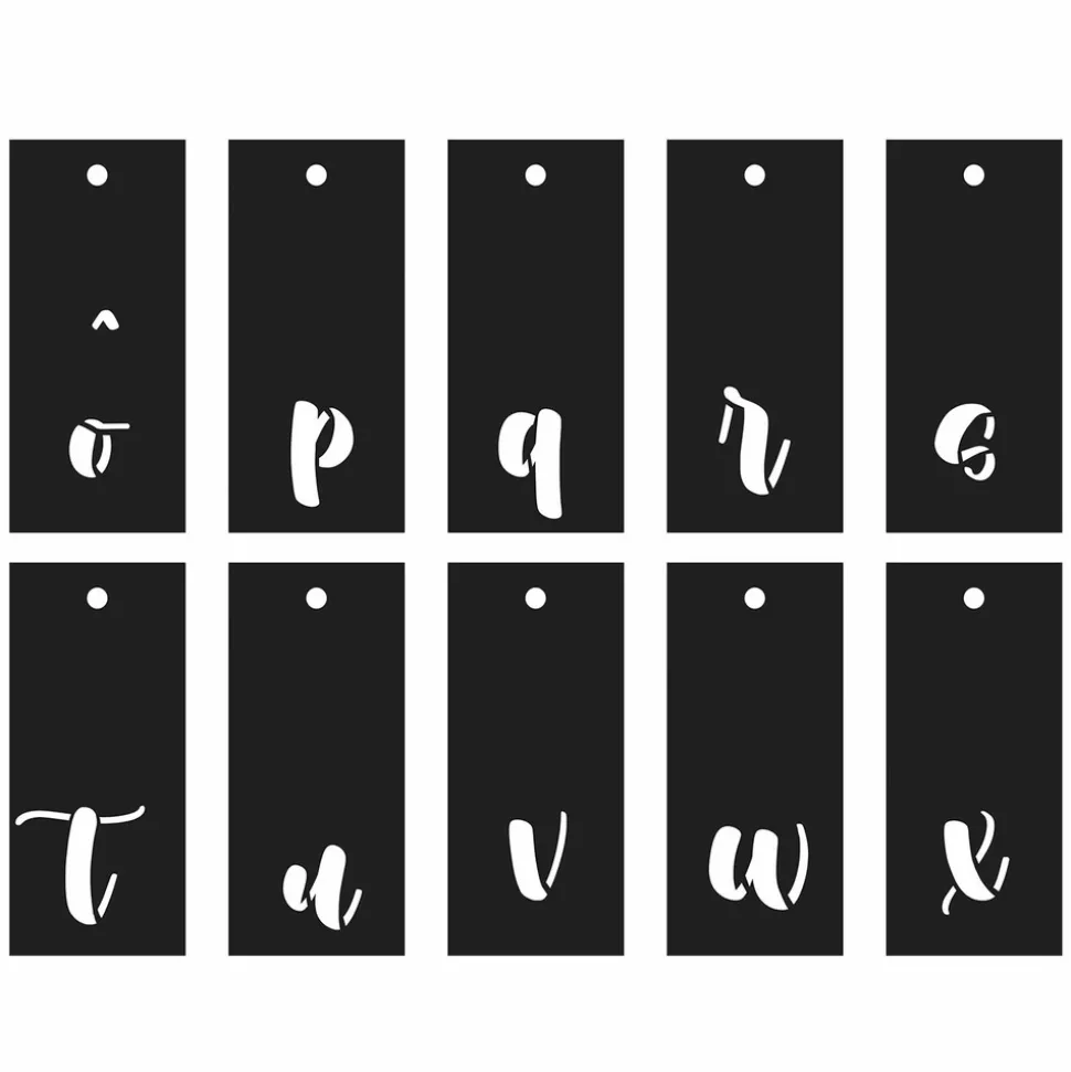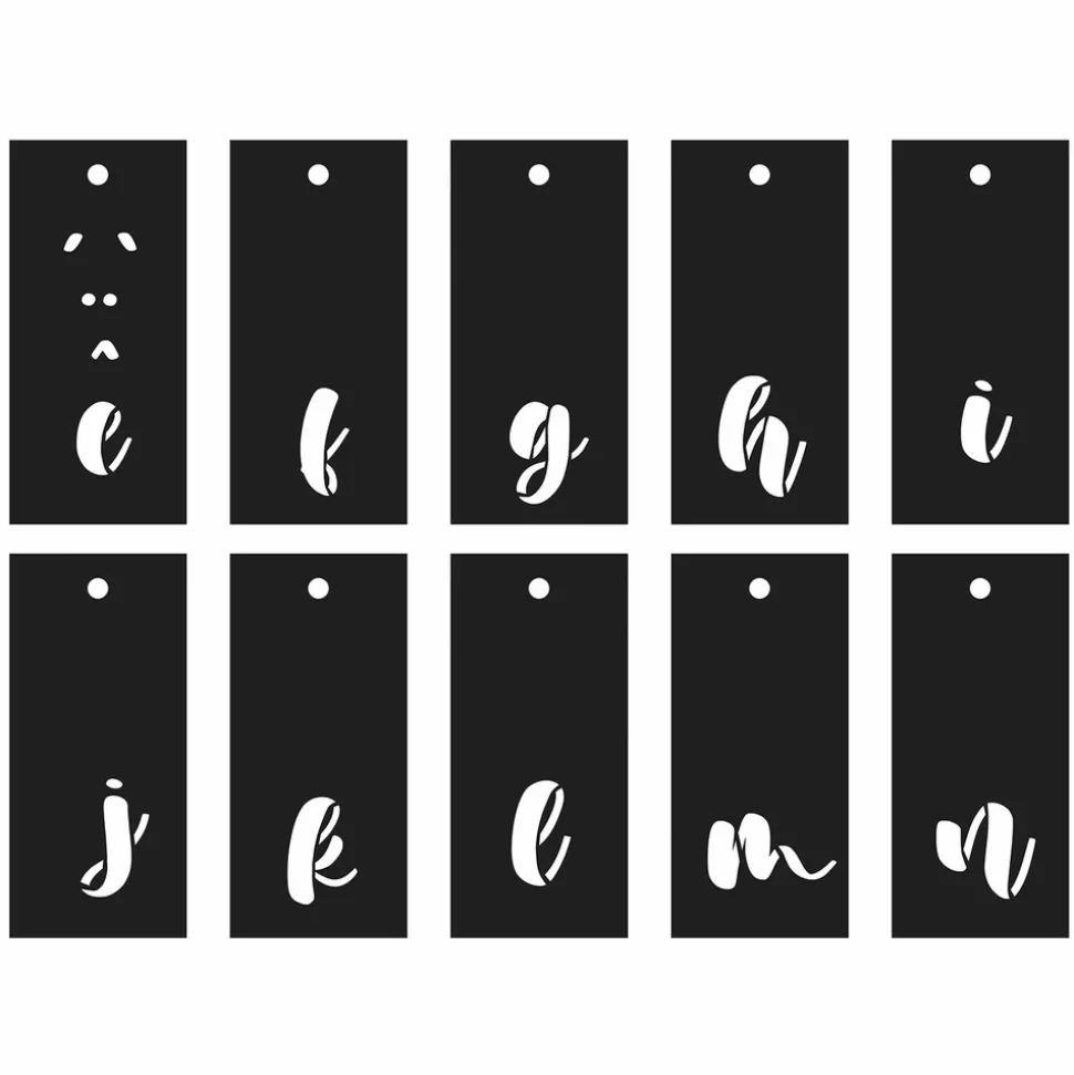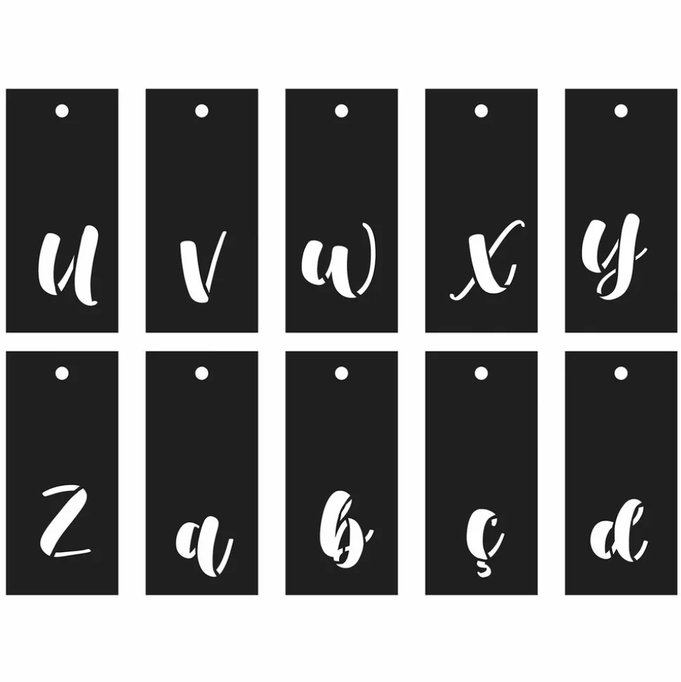 Mettez votre créativité en valeur avec ce lot de 70 pochoirs en calligraphie. Comprenant les majuscules et minuscules, vous aurez tout ce dont vous avez besoin pour réaliser vos projets de lettrage. Les pochoirs découpés au laser offrent une précision maximale, tandis que l’anneau de rangement facilite l’organisation. Ce lot de pochoirs en calligraphie est idéal pour les artistes, les graphistes et les amateurs de DIY.Les pochoirs mesurent : 13 x 6 cm.