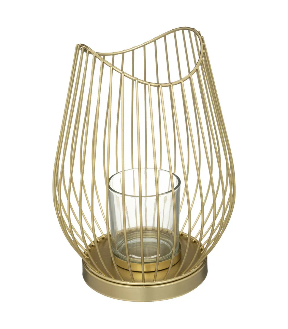 Bougeoir Photophore en métal filaire doré D 17 x H 23,5 cm –