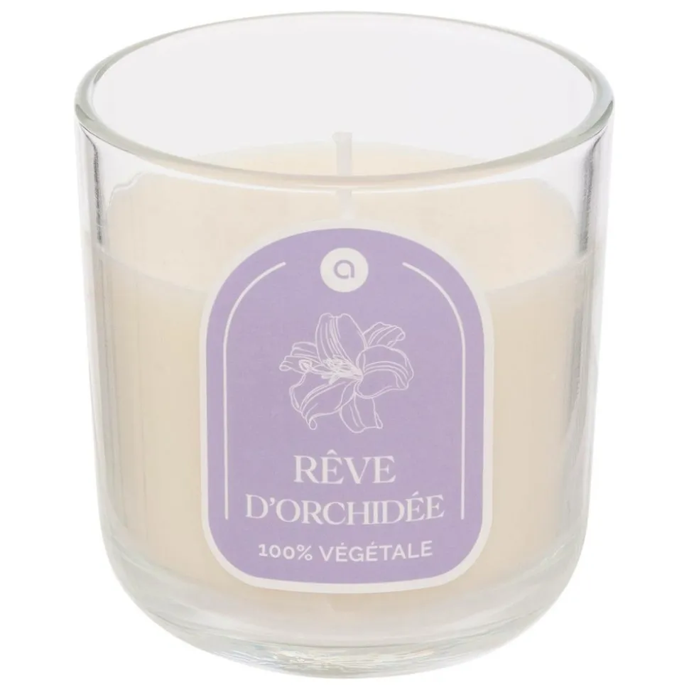 Laissez-vous séduire par la bougie parfumée* » Floa » Atmosphera et profitez d’un parfum d’orchidée dans votre intérieur ! Placés dans un photophore cylindrique en verre, ses 115 g de paraffine vous offriront jusqu’à 25 heures d’ambiance olfactive grâce à sa mèche en coton. Vous pourrez recycler le contenant une fois la bougie consumée en y plaçant une bougie chauffe-plat.