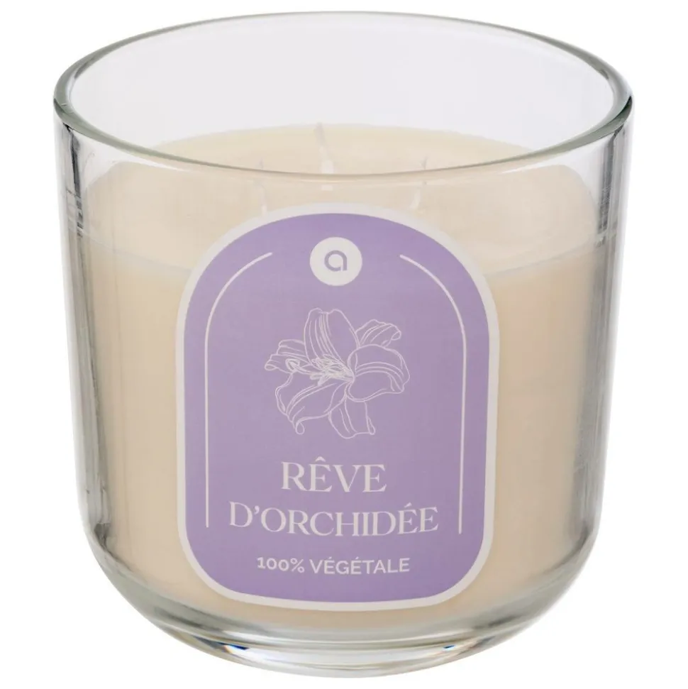Laissez-vous séduire par la bougie parfumée* » Floa » Atmosphera et profitez d’un parfum d’orchidée dans votre intérieur ! Placés dans un photophore cylindrique en verre, ses 610 g de paraffine vous offriront jusqu’à 50 heures d’ambiance olfactive grâce à trois mèches en coton. Vous pourrez recycler le contenant une fois la bougie consumée en y plaçant une bougie chauffe-plat.