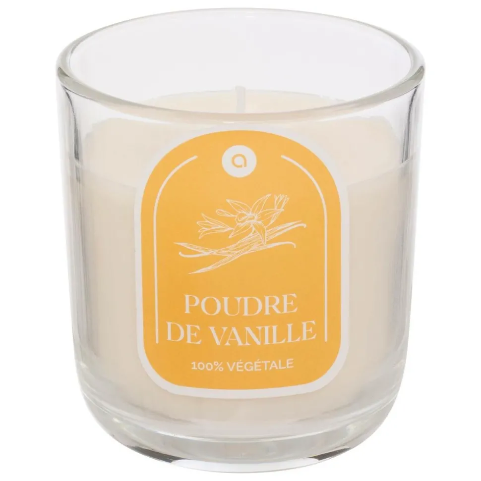 Laissez-vous séduire par la bougie parfumée* » Floa » Atmosphera et profitez d’un parfum de vanille dans votre intérieur ! Placés dans un photophore cylindrique en verre, ses 210 g de paraffine vous offriront jusqu’à 45 heures d’ambiance olfactive grâce à sa mèche en coton. Vous pourrez recycler le contenant une fois la bougie consumée en y plaçant une bougie chauffe-plat.