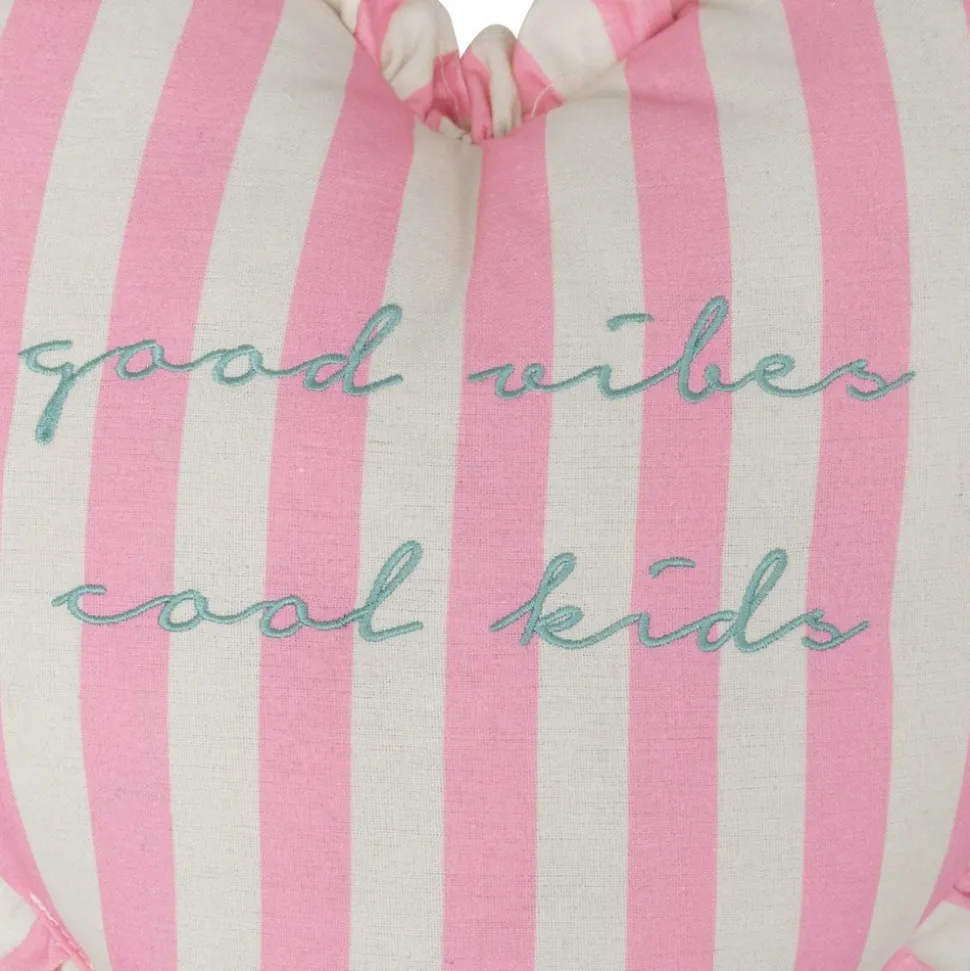 Vous souhaitez accessoiriser une chambre d’enfant ? Le coussin coeur « Ava » Atmosphera for kids devrait vous convenir ! Parfait pour créer une ambiance tendre et douillette sur un lit d’enfant ou sur un petit fauteuil en rotin, ce coussin rayé rose et blanc en forme de coeur est bordé de volants romantiques. Brodé d’un message positif, il séduira les princesses en herbe !