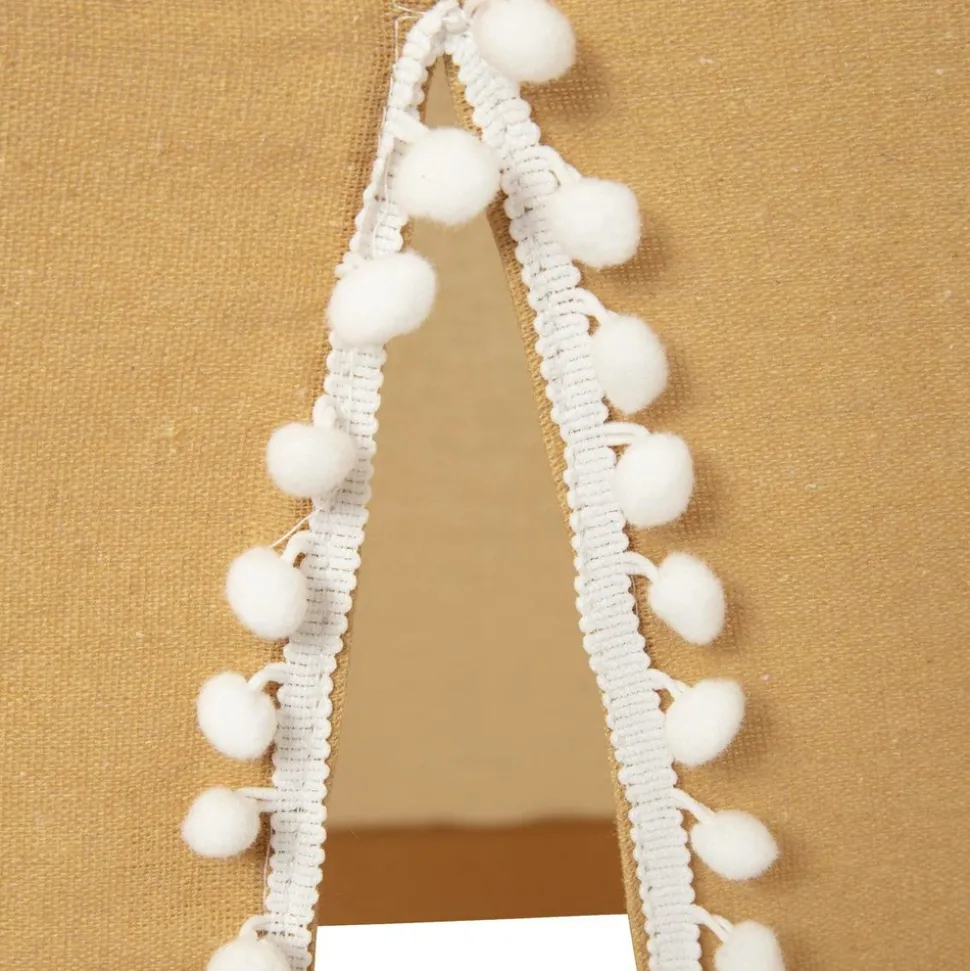 Avec sa structure en poteaux de peuplier et sa toile en tissu joliment bordée de pompons contrastés, ce tipi deviendra vite un élément phare d’une déco. Il est muni d’une petite fenêtre et d’une ouverture à l’avant qui peut se fermer grâce à des cordelettes : un véritable petit refuge propice à la rêverie, à la sieste et aux jeux !