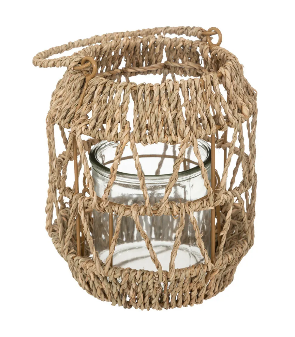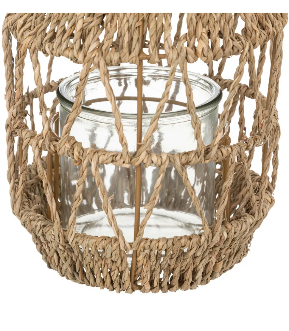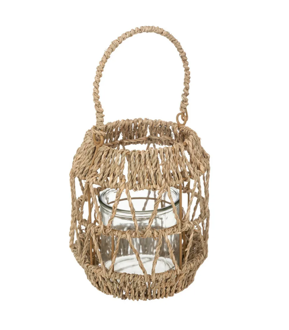 Lanterne Photophore en Métal et Rotin Bougeoir en Verre D 17 x H 18 cm –