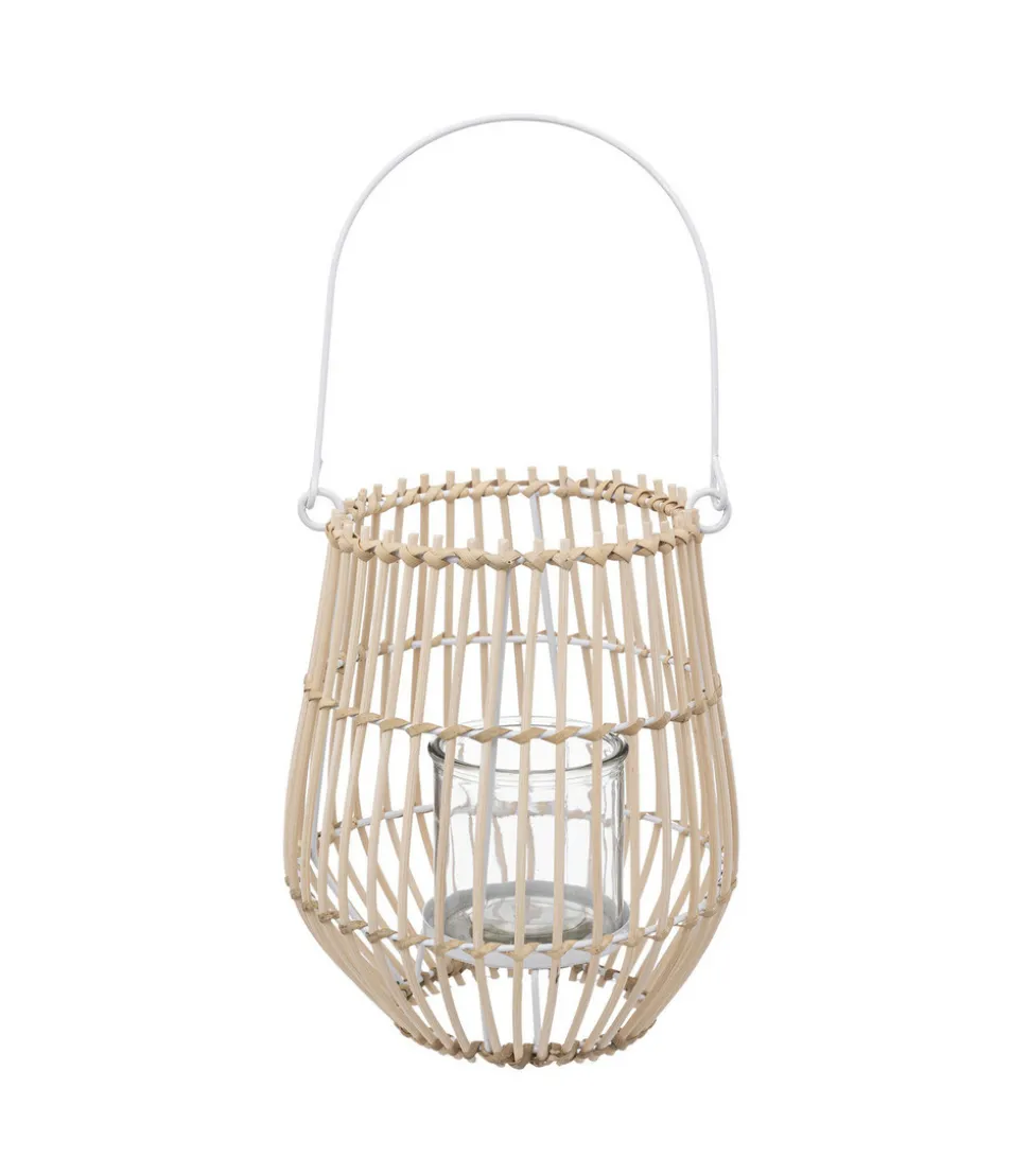 Lanterne Photophore en Rotin et Métal Bougeoir en Verre D 18 x H 21,5 cm –
