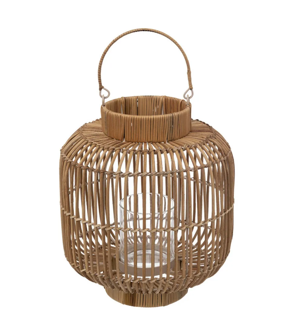 Lanterne Photophore en Rotin et Métal Bougeoir en Verre D 25 x H 31 cm –