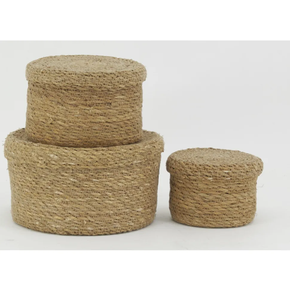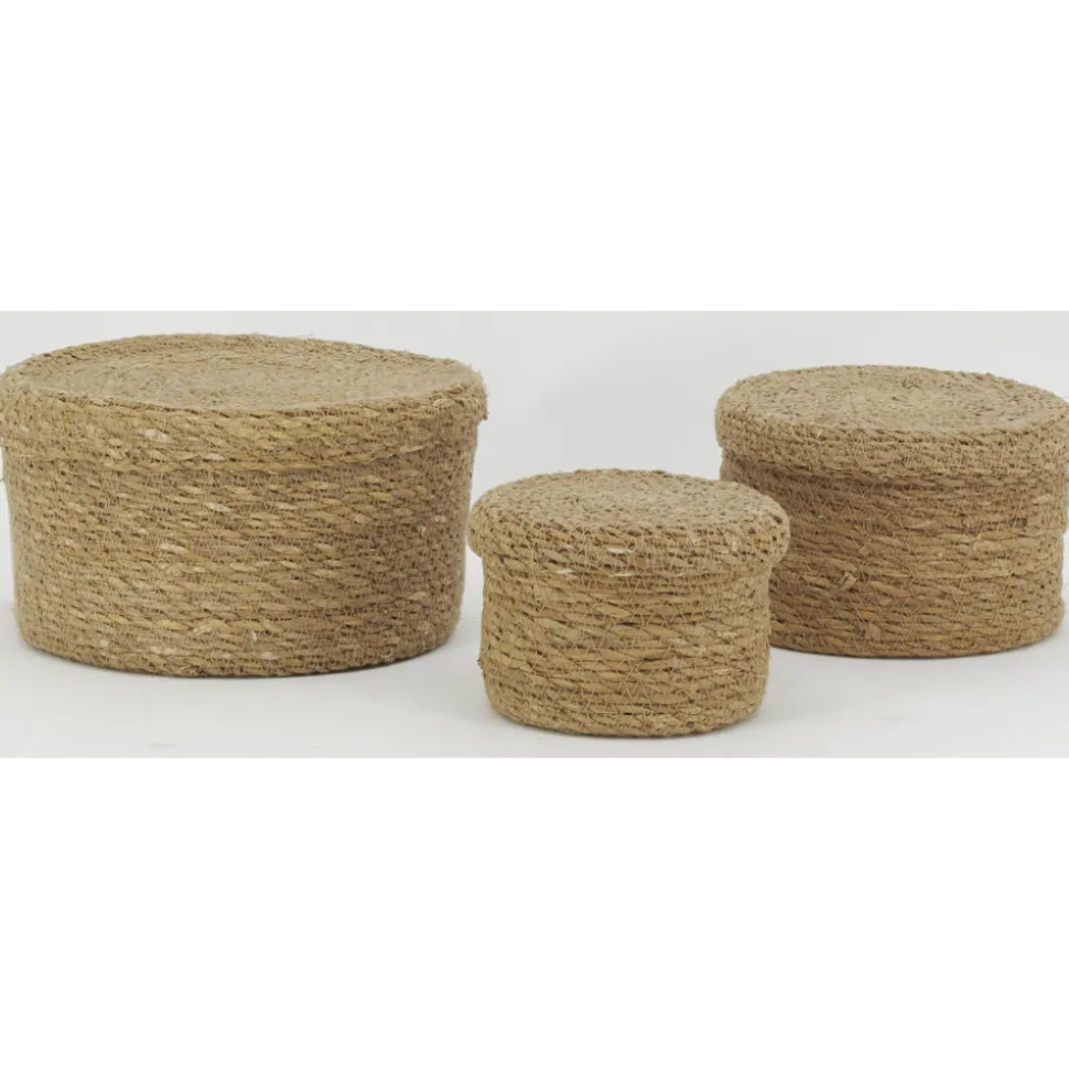 3 boîtes en jonc naturel