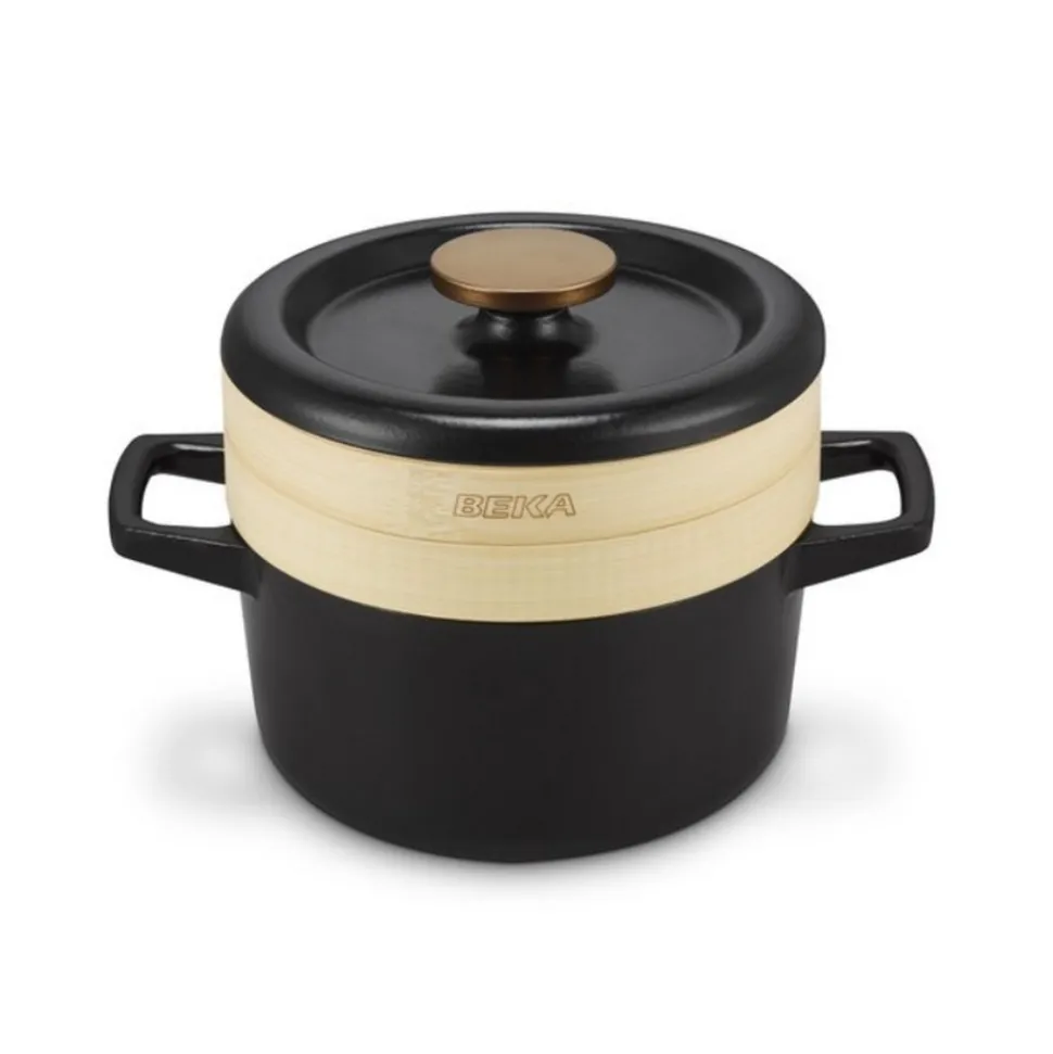 Cuit-vapeur Nori 15149204 de Beka. Une gamme qui réinvente les ustensiles de cuisine en fonte en leur donnant un look moderne et intemporel ! La cocotte en fonte 2 en 1, accompagnée de ses paniers vapeur en bambou. Transformez votre cocote NORI en cuit-vapeur grâce à ces 2 étages supplémentaires. Bénéficiez d’un gain de temps et d’espace en réalisant plusieurs cuissons à la fois.