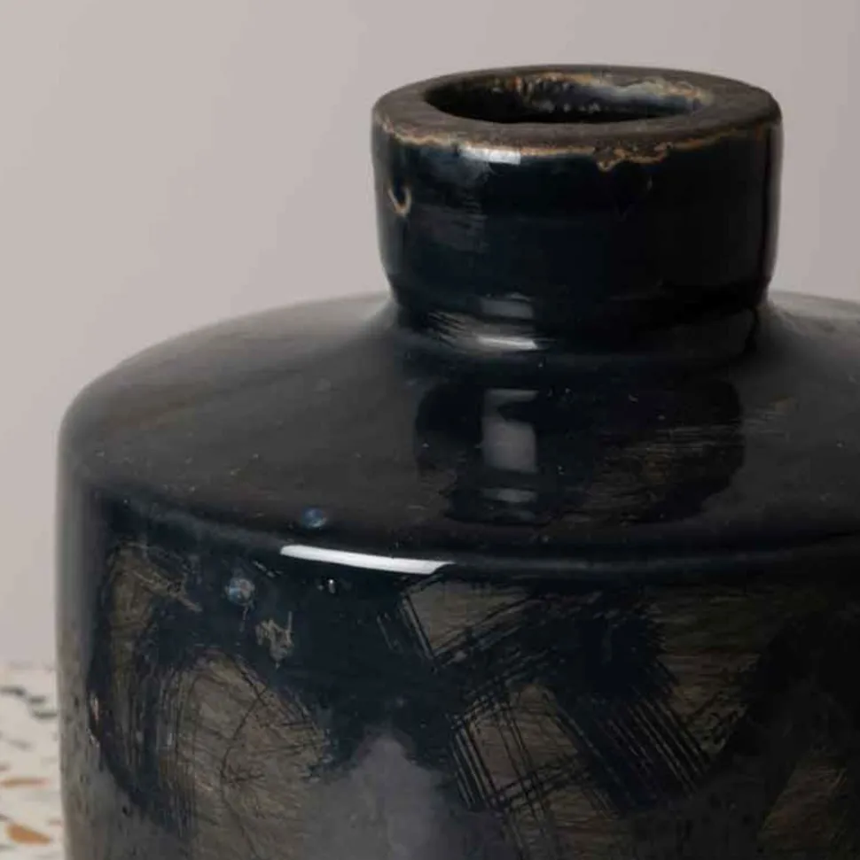 Sa superbe teinte bleu marine, à la fois moderne et intemporelle, se marie parfaitement avec une palette de couleurs neutres ou contrastées, permettant une intégration harmonieuse dans divers styles de décoration. Parfaitement adapté pour accueillir des branches décoratives, des fleurs séchées ou simplement exposé en tant qu’œuvre d’art autonome, ce vase en céramique bleu marine est une pièce maîtresse qui apportera profondeur et sophistication à n’importe quelle pièce. Son design raffiné et sa couleur intense font de lui un objet de décoration polyvalent, capable de rehausser l’esthétique d’un salon, d’une entrée ou même d’une chambre.