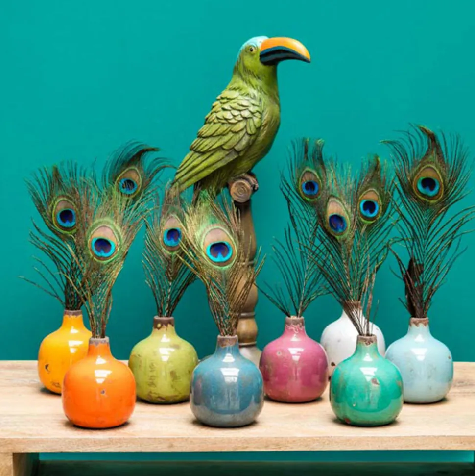 Ce petit vase, à la forme arrondie et au col resserré, est idéal pour accueillir une fleur séchée, une tige de graminée ou même un petit bouquet minimaliste. Son allure discrète mais raffinée fait de lui un excellent élément d’accent décoratif, capable de souligner une ambiance bohème, naturelle ou rustique. C’est un accessoire simple, mais à fort pouvoir décoratif.