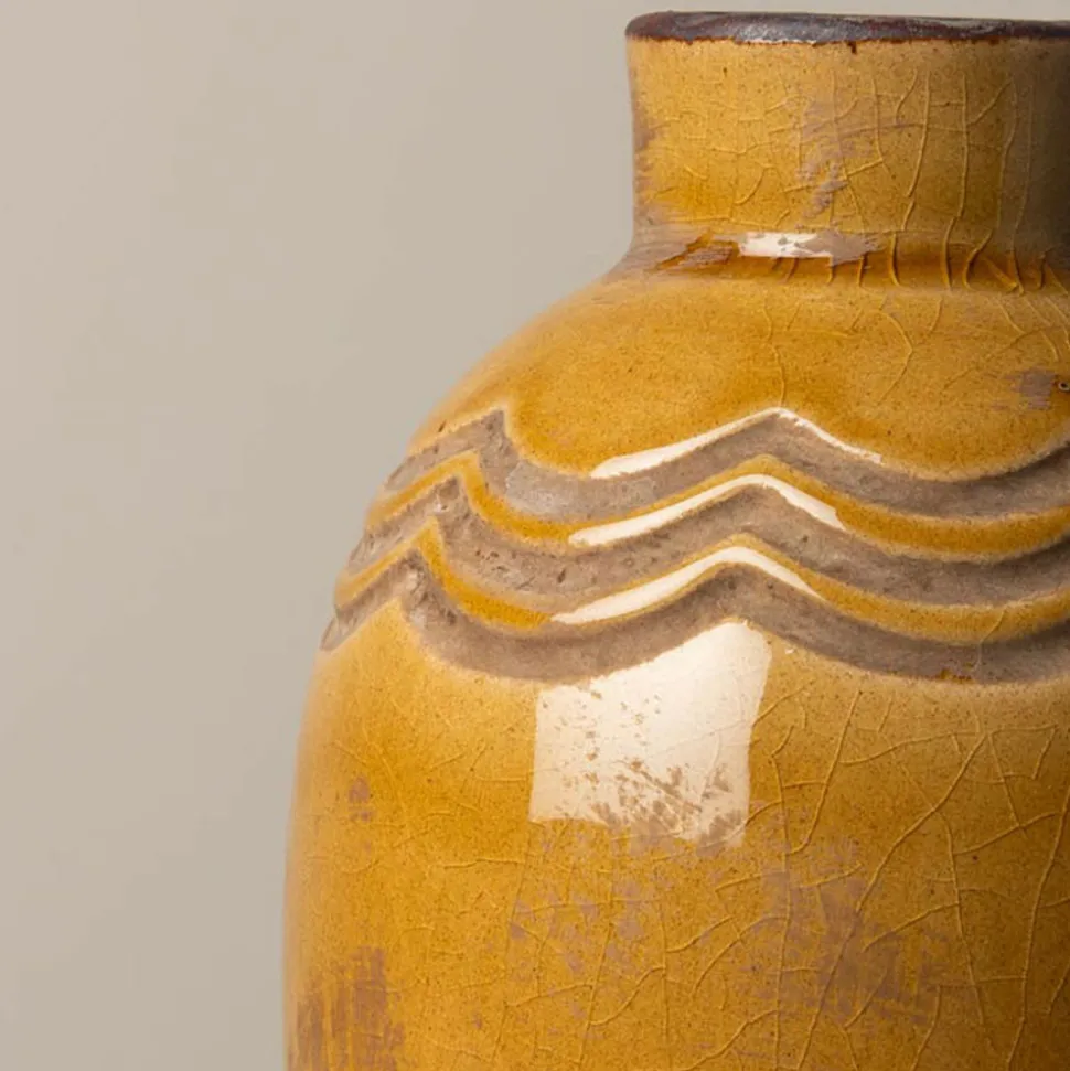 Découvrez l’authenticité et le charme unique de notre vase en céramique moutarde !
