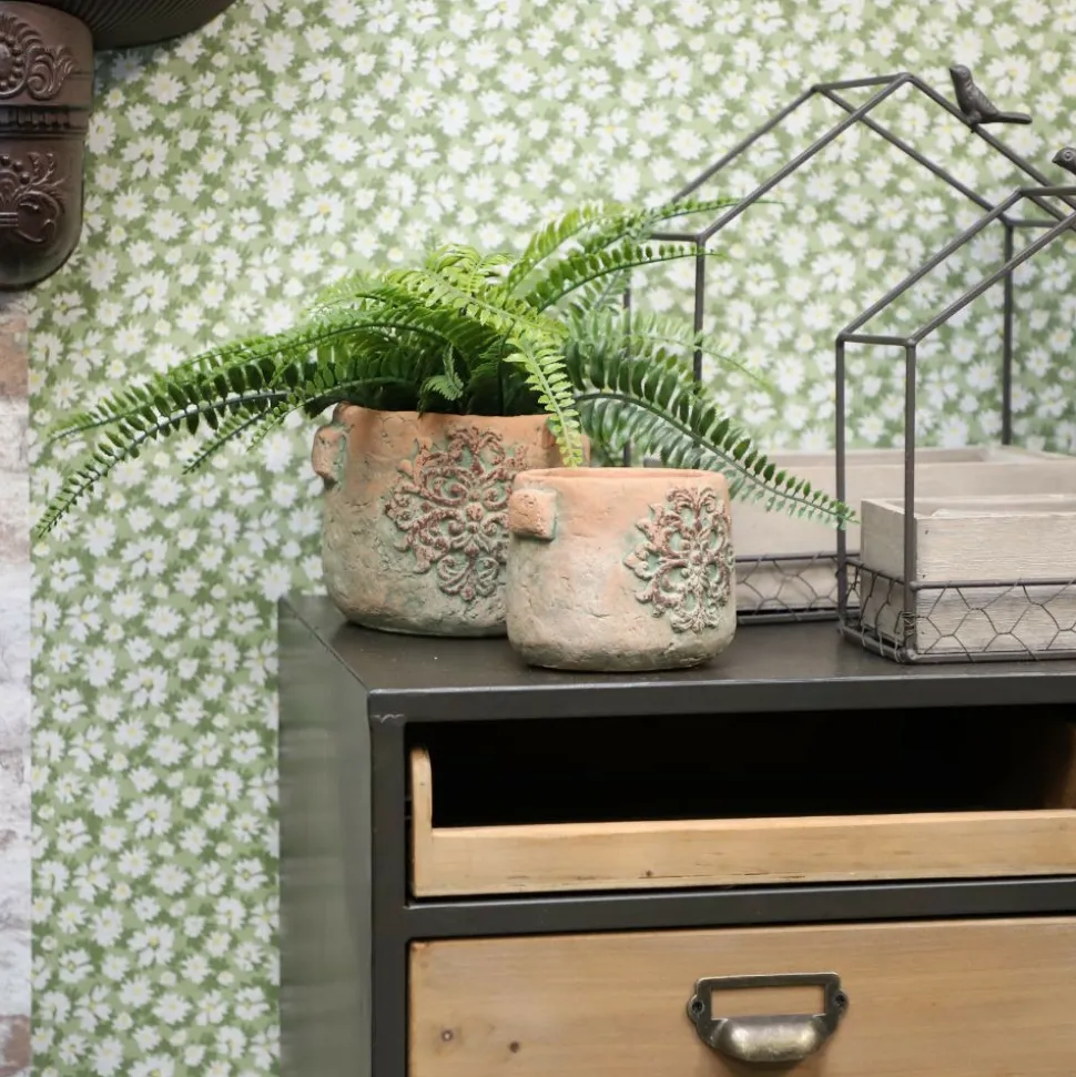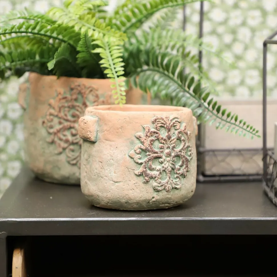 Utilisation : Idéal pour vos plantes vertes, aromatique ou fleurs séchées, ce cache-pot trouvera sa place dans une cuisine, un salon, une véranda ou sur une terrasse abritée. Utilisé seul ou accompagné d’autres contenants eux textures vieillis, il compose une belle scène végétale pleine de nature et d’élégance rustique.