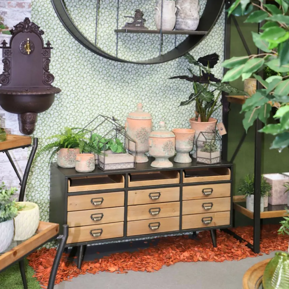 Couleur détaillée : Le fini vieilli rappelle la terre cuite ancienne avec des nuances minérales douces et chaleureuses. Cette finition brute s’intègre facilement dans des ambiances naturelles, bohèmes ou maison de campagne, en apportant un aspect artisanal et authentique.