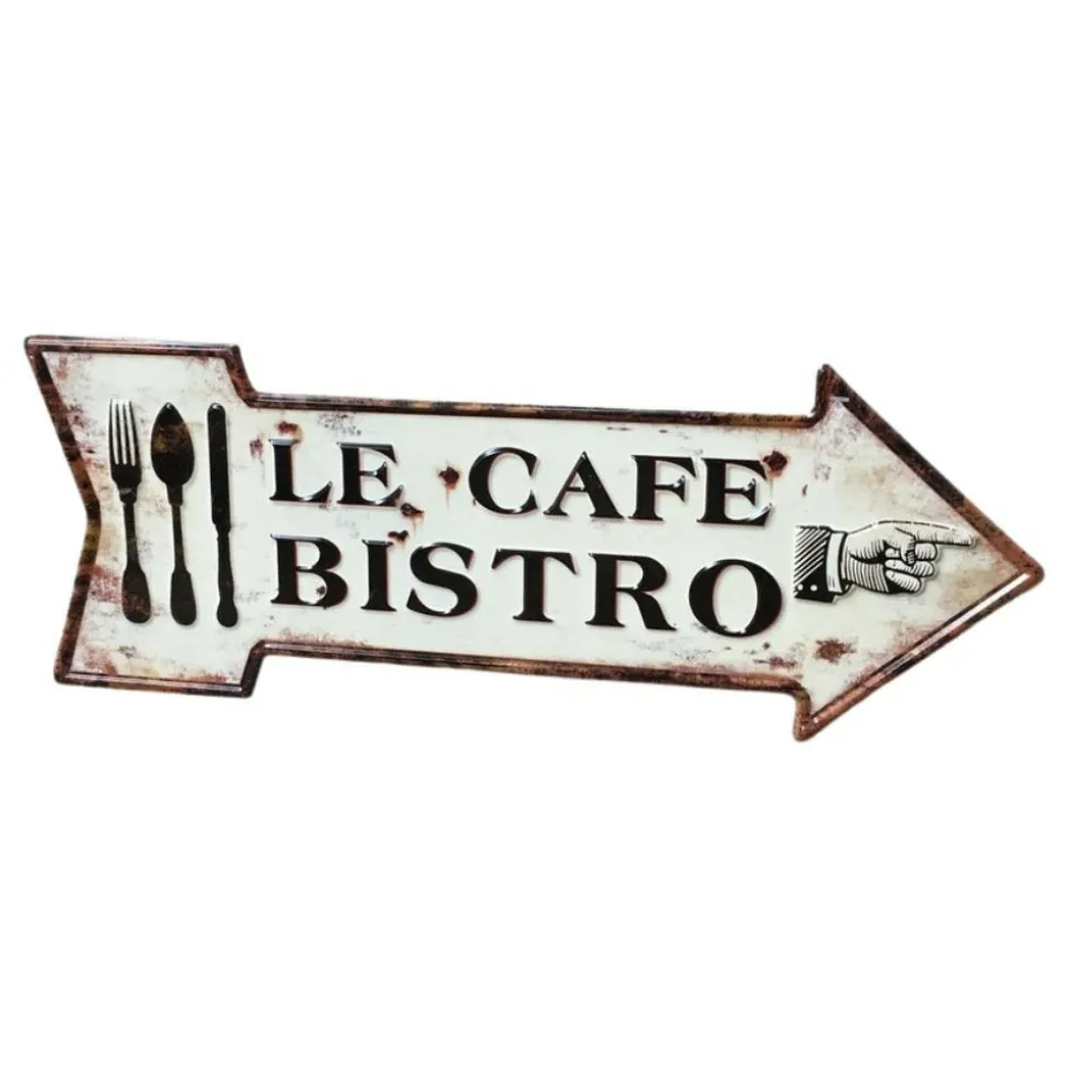 Utilisation : Cette plaque en forme de flèche, ornée de l’inscription “Le Café Bistro”, ajoute une touche rétro-chic à votre décoration. Elle attire visuellement et peut être utilisée pour indiquer l’emplacement d’un café ou simplement ajouter une ambiance chaleureuse à votre intérieur.