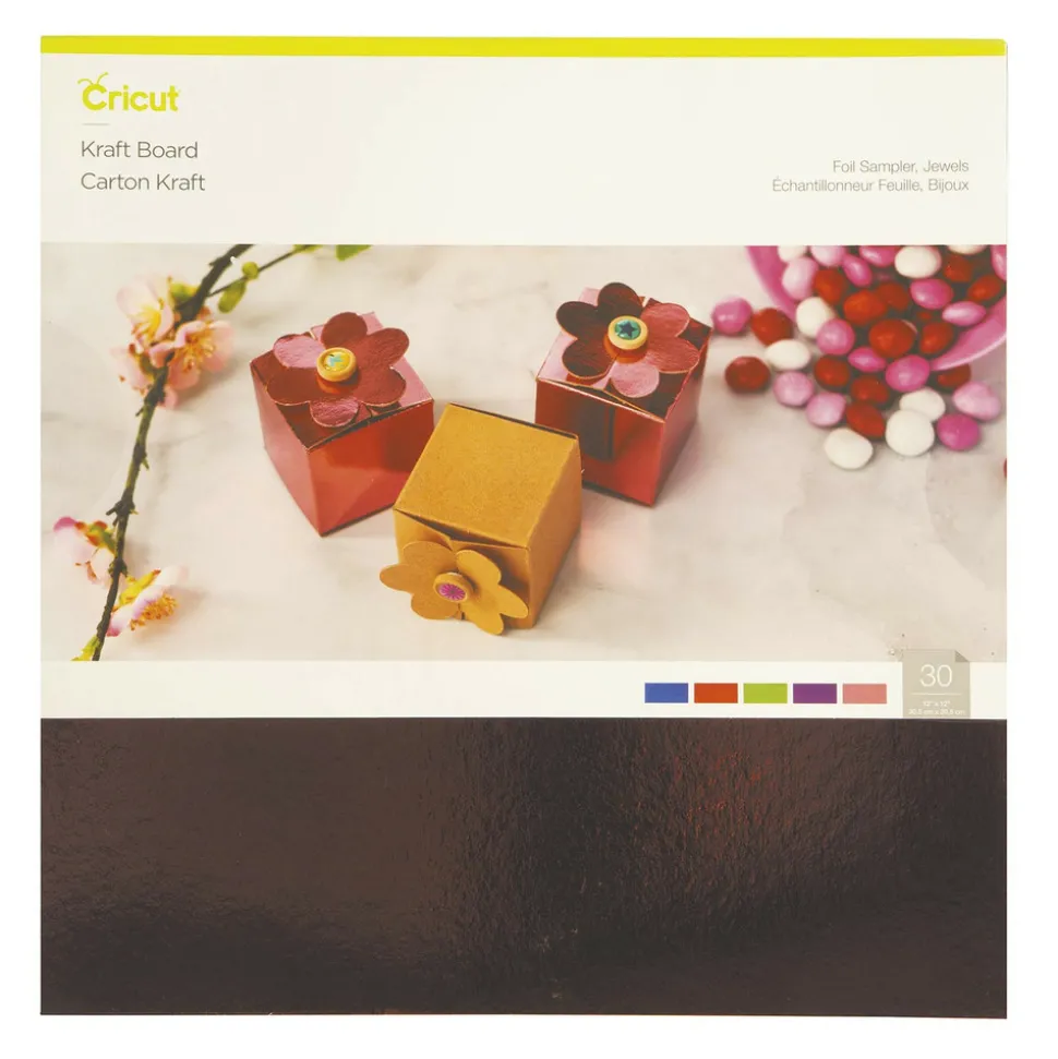 Le carton kraft Cricut vous permet de créer des décors et des objets robustes en 3D. Idéal pour les décorations, les mini-livres, les boîtes, les cartes, les étiquettes, les bannières et bien plus encore ! Vous pouvez couper, marquer et écrire dessus sans créer de fissures, de déchirures ou de marques blanches. Personnalisez une boîte cadeau, découpez une bannière d’anniversaire personnalisée ou créez de jolies décorations facilement grâce à ce matériau polyvalent. Ce produit peut être utilisé avec toutes les machines de découpe Cricut. L’effet métalisé de ces feuilles de carton donnera une touche sophistiquée à vos créations. Contenu : 30 feuilles (6 x 5 coloris). Dimensions : 30,5 x 30,5 cm. Couleurs : violet, rose, rouge, bleu et vert. Référence Cricut : 2005491.