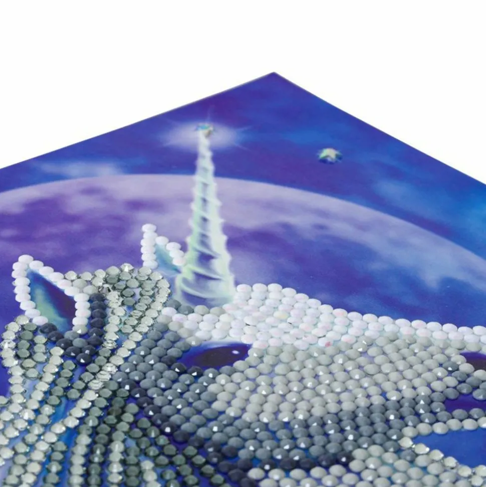 Kit carte broderie diamant. Ce kit créatif est idéal pour réaliser une carte de vœux ou fêter un anniversaire de façon scintillante grâce aux cristaux brillants. La broderie diamant consiste à réaliser une œuvre (cadre ou carte) en collant les strass colorés aux bons endroits grâce aux numéros. Idéal pour éveiller l’esprit créatif des petits et des plus grands. Le dessin étant déjà imprimé, il suffit de déposer les diamants sur les zones adhésives pour obtenir un rendu époustouflant ! Ce kit diamant contient tout le nécessaire pour réaliser de jolies cartes : 1 carte auto adhésive, 1 stylet pour diamanter, des strass brillants, 1 enveloppe et de la cire.
