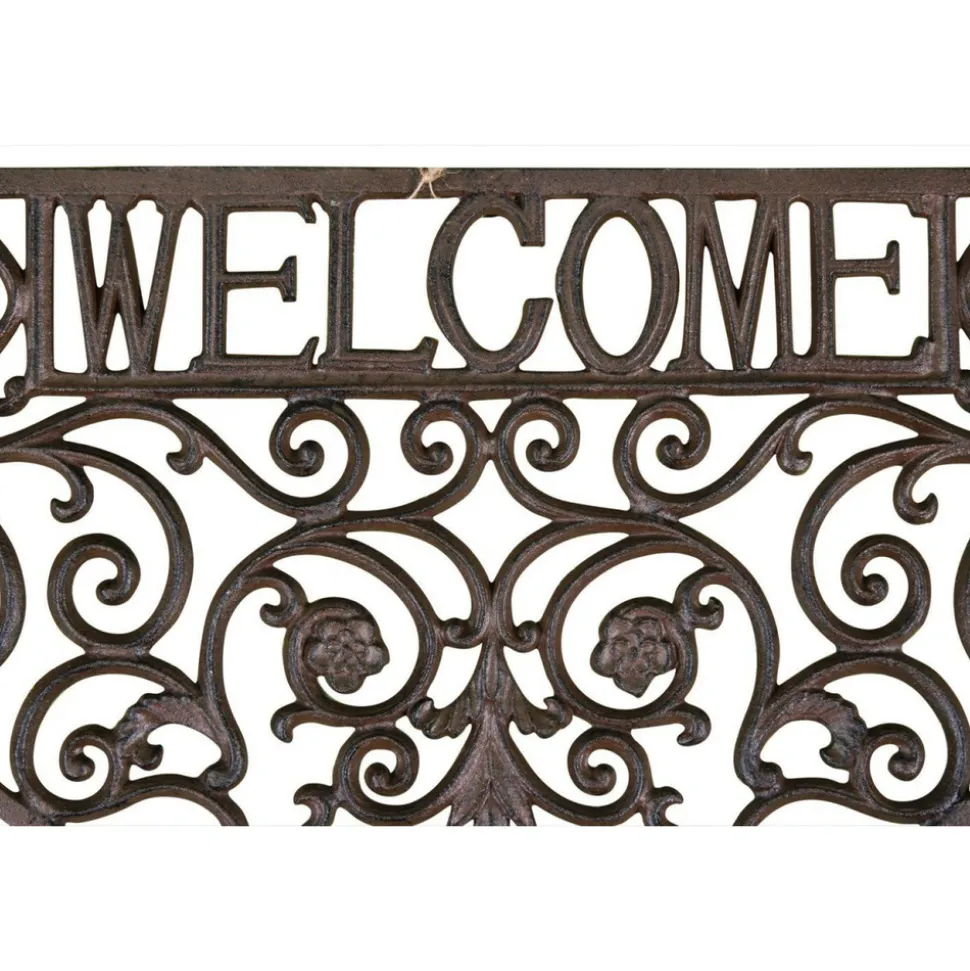La décoration d’autrefois devient tendance ! Pour égayer votre décor avec un élément authentique et rétro, craquez pour ce tapis paillasson fer forgé demi-lune fonte.