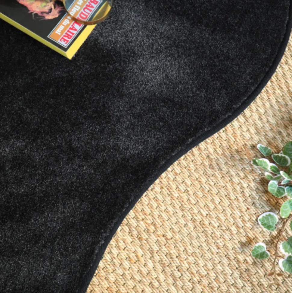 Le tapis Hypnose est un tapis moelleux à la forme organique et fluide qui vous envoûtera par son toucher extrêmement soyeux. Confectionné en France par nos couturières, ce tapis est fabriqué dans une matière incroyablement douce et délicate. Avec son galon ton sur ton, cet élégant tapis noir velours est une petite pépite à ne pas laisser passer, il sera la pièce maitresse de votre décoration d’intérieur. Inspirée par une influenceuse à la recherche d’un tapis unique aux courbes douces et asymétriques, cette création au design original s’intègre parfaitement dans une décoration intimiste, simple et raffinée.