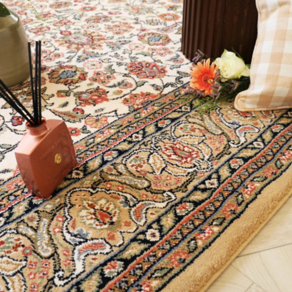 Ce tapis floral traditionnel, orné de petites fleurs délicates, apporte une touche subtile de raffinement et de poésie à votre décoration intérieur, avec tout le charme des tapis d’antan.