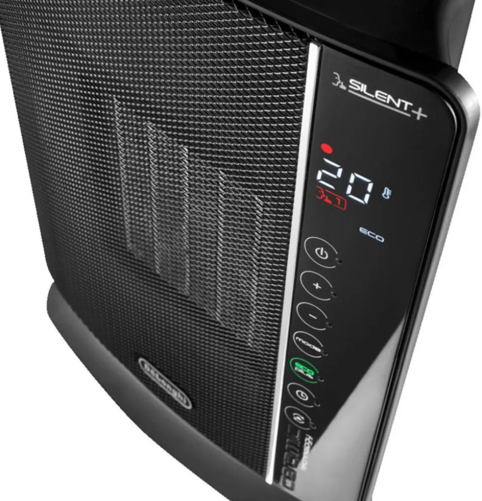 Chauffage soufflant céramique DCH7993ER-BC. Nouvelle ligne, épurée et élégante. Avec écran de contrôle soft touch. Touches de fonctions directement accessibles pour une utilisation immédiate et simplifiée. Une télécommande est fournie.Base motorisée oscillante : pour une distribution uniforme et rapide de l?air chaud.SECURITE ANTI-BASCULEMENTL?appareil s?arrête automatiquement en cas de basculement.ECONOMIE D?ENERGIELa fonction Eco Plus module le niveau de puissance de l?appareil en régulant le flux et le thermostat.Ainsi la consommation d’énergie est-elle optimisé de même que le niveau de confort choisi par l?utilisateur.