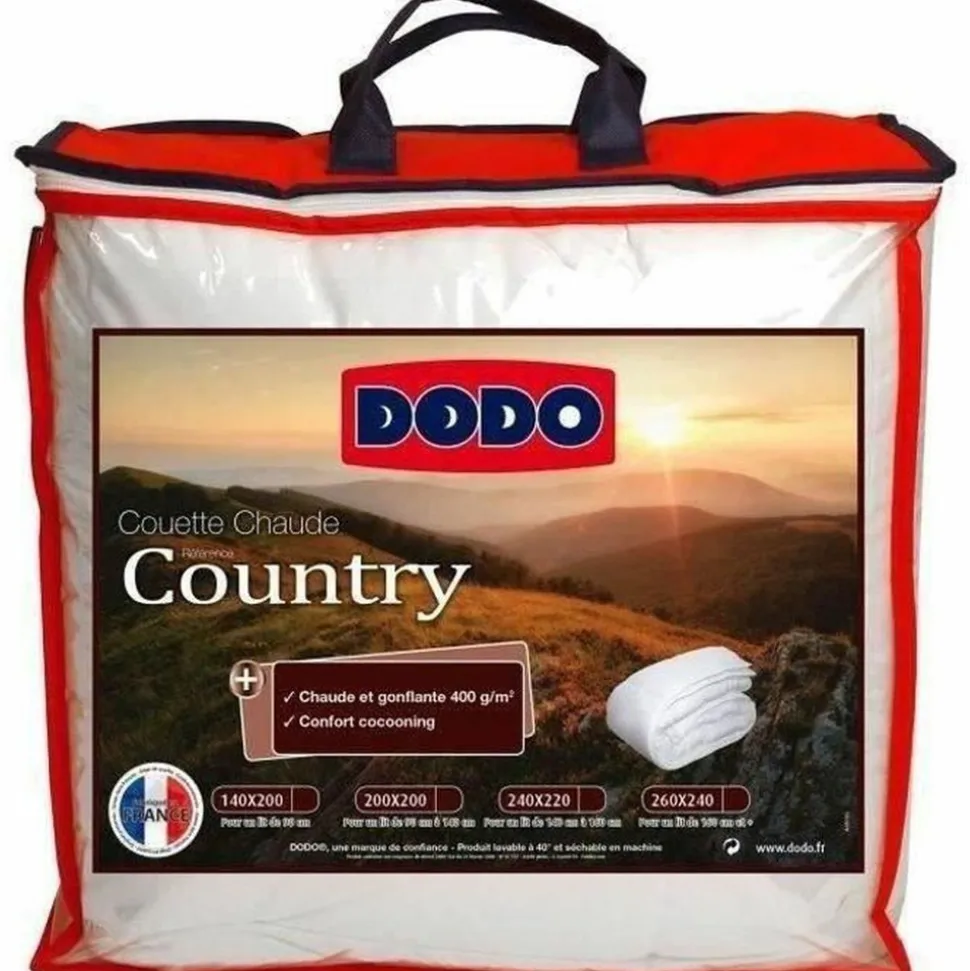 Couette chaude Country Couette blanche – Confort durable – Fabriqué en France . + produit Vous etes a la recherche d’une couette chaude, douce et confortable pour vous cocooner toute la nuit ? Dodo a ce qu’il vous faut ! La couette Country sera idéale pour vous. En plus de ses qualités de confort, son enveloppe en polycoton lui permet de résister dans le temps.