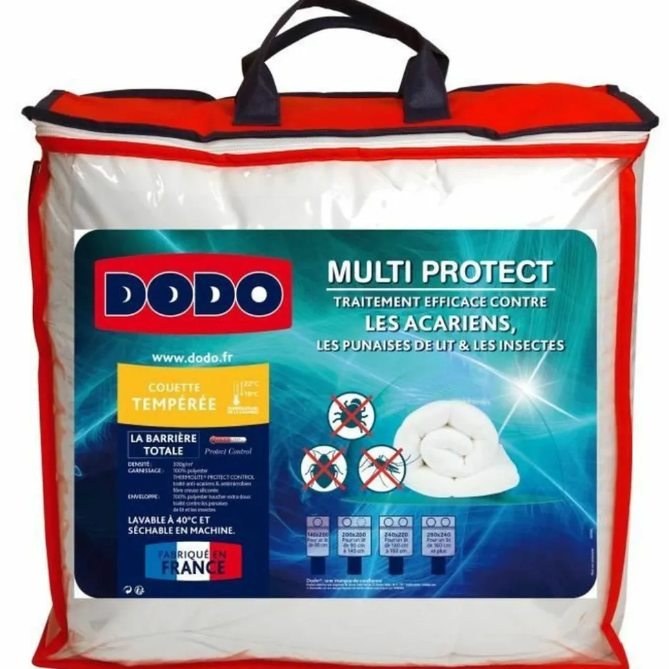 Couette tempérée – 140 x 200 cm – Traitée contre les punaises de lit et les insectes – Garnissage : anti-acariens et antimicrobien, en 100% Polyester Thermolite® Protect Control 300g/m² – Enveloppe : tissu extra-doux 100% Polyester – Pour les chambres dont la température est comprise entre 18 et 22° – Fabrication française.