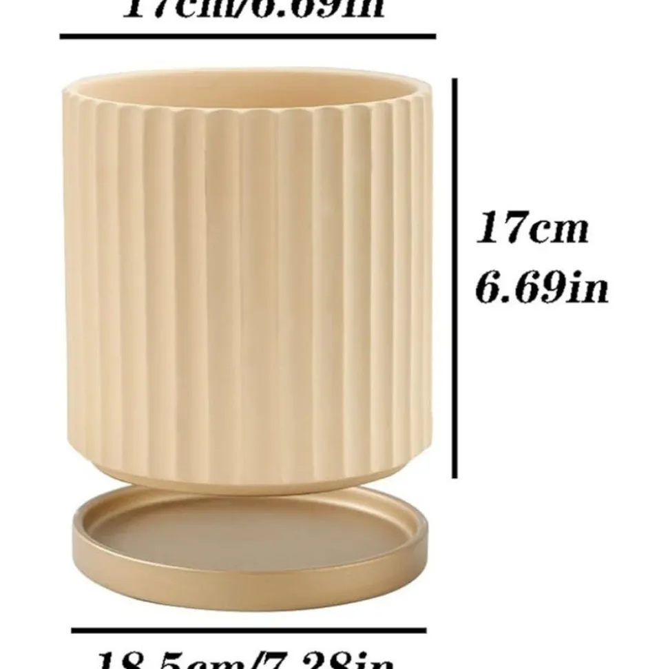 ????【Pot de fleur élégant】 Ce pot de fleur avec des rayures verticales est simple et exquis, avec une couleur pleine et délicate. Il apportera une touche de raffinement à votre décoration. ????