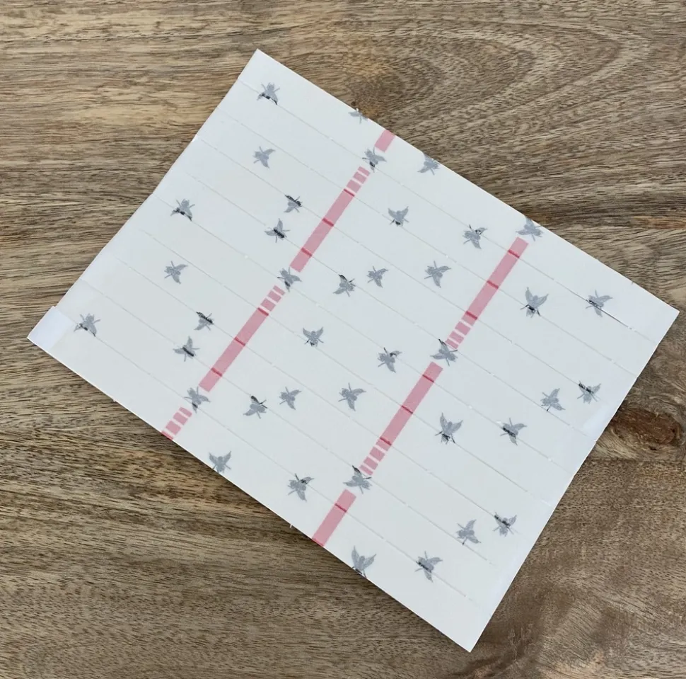 La bande attrape-mouches élimine les insectes volants à l’intérieur de vos maisons et appartements.Le reflet brillant de la bande ainsi que l’imprimé mouche vont attirer les insectes qui resteront collés sur la surface adhésive.Il suffit simplement de poser des bandes sur vos rebords de fenêtres, lieu où les insectes adorent se poser.Comment utiliser la bande attrape mouches ?Détacher une bandeDécoller le papier protecteur jaune placé sur les 2 adhésifsPositionner la bande sur le bord de la fenêtreUne fois la bande en place, retirer la protection, c’est prêt !Toutes les deux à semaines vous pouvez changer la bande, sauf si cette dernière est saturée d’insectes avant.Caractéristique :Pack de 10 bandesSans produit toxiqueFabrication européenneSoft impactDimensions: 1,5*20 cmRetrouvez également l’attrape mouche en rouleaux et le piège à guêpe
