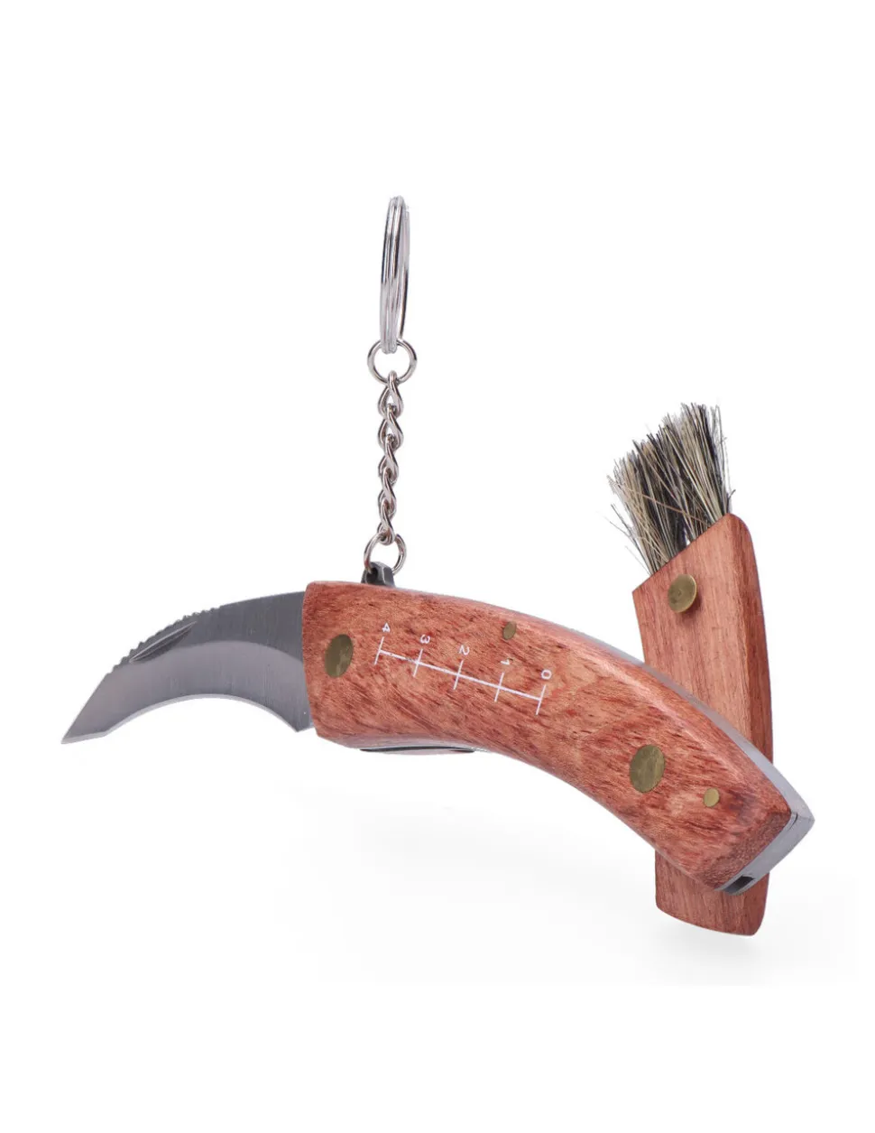 Couteau cueilleur de champignons avec manche en bois, lame en acier inoxydable 420, comprend un étui en nylon et clip de ceinture, se compose de 4 fonctions : couteau, porte-clés, brosse pliante et mesureur, serie irati. edm
