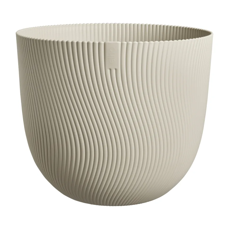 Qui n’éprouve pas une sensation apaisante au balancement de l’herbe avec la brise ? Le pot Sereh s’inspire de cette verdure qui ondule doucement. Sa texture et sa forme arrondie vous connecteront instantanément à l’agréable sensation d’être en pleine nature. Fabriqué à partir de plastique 100% recyclé, il résiste au gel et aux UV, vous permettant de profiter de la verdure dans votre jardin, sur votre terrasse ou balcon tout au long de l’année. Idéal pour l’extérieur, il peut également trouver sa place à l’intérieur, à condition de placer le bouchon dans le tuyau d’évacuation d’eau. Pot Sereh rond, coloris beige champignon – D.39xH.33,3cm.