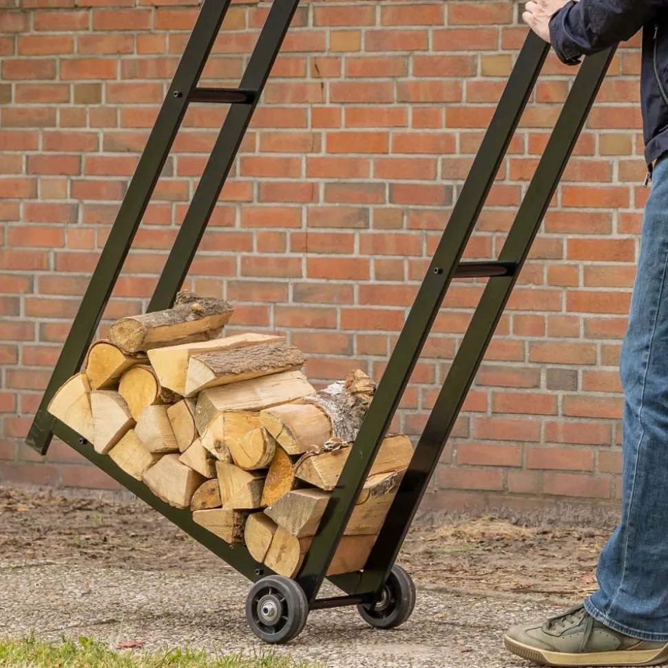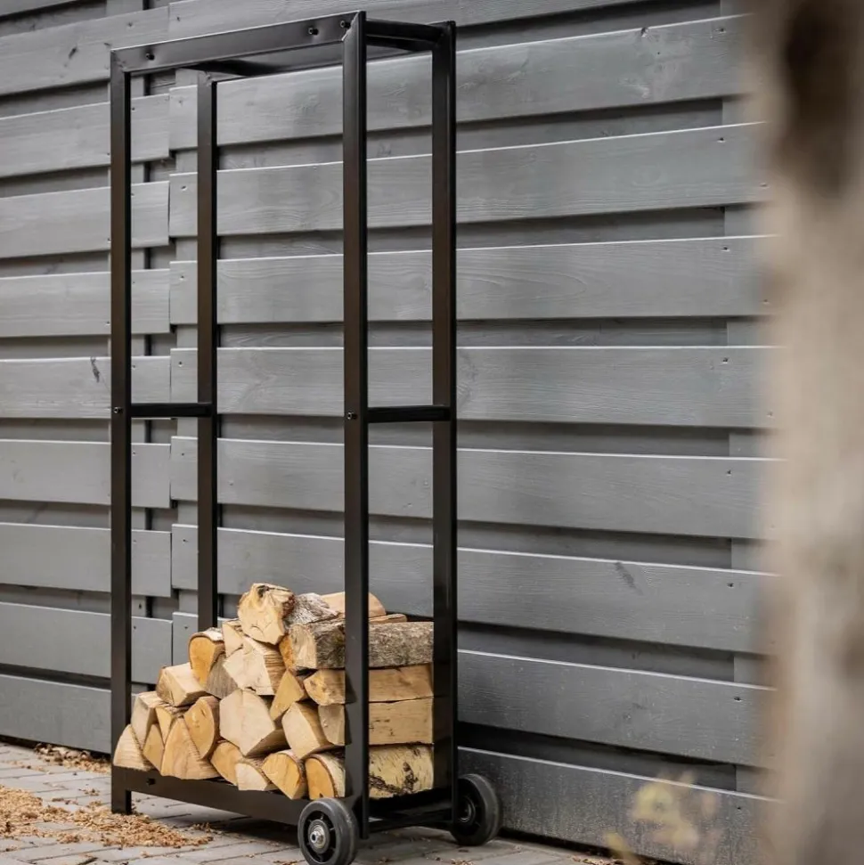 Porte bûches en métal avec 2 roues