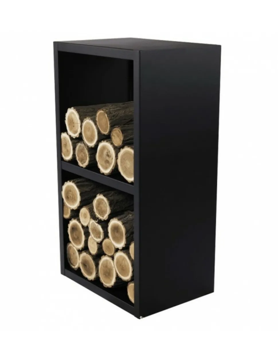 Range bûches rectangulaire LOLI en acier noir 45x30x80 cm