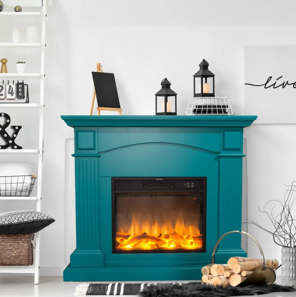 La cheminée électrique FUEGO GALIA TURQUESA, avec sa douce finition turquoise, se distingue par son design. C’est l’élément idéal pour rehausser l’atmosphère de votre salon, de votre bureau ou de votre chambre à coucher, en transformant tout espace en une ambiance raffinée et chaleureuse.