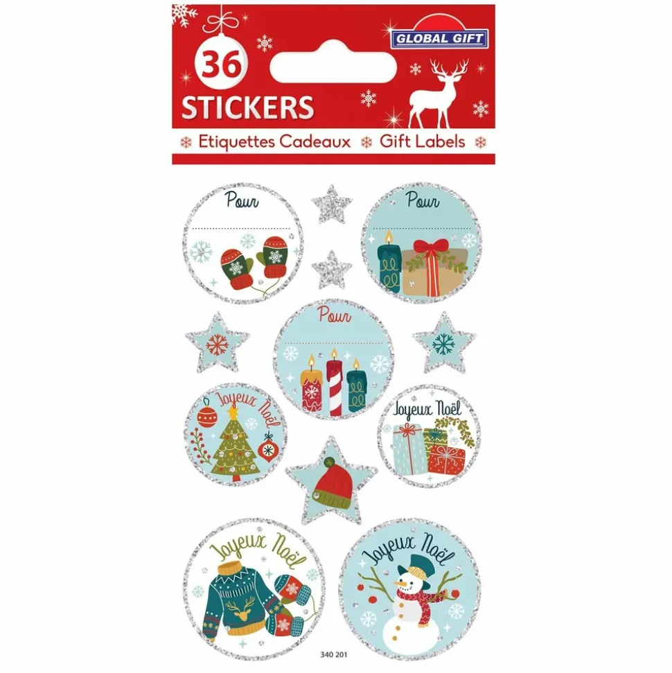 36 étiquettes adhésives sur le thème de Noël pour personnaliser vos cartes de voeux et vos cadeaux de Noël. Très pratiques à utiliser, vous pourrez embellir en un instant vos emballages de Noël et vos projets scrapbooking. Dimensions de la feuille d’autocollants : 7,5 x 12 cm. Motifs : bonhomme de neige, cadeaux, sapin, bougie, bonnet de Noël… Stickers avec des paillettes argentées.