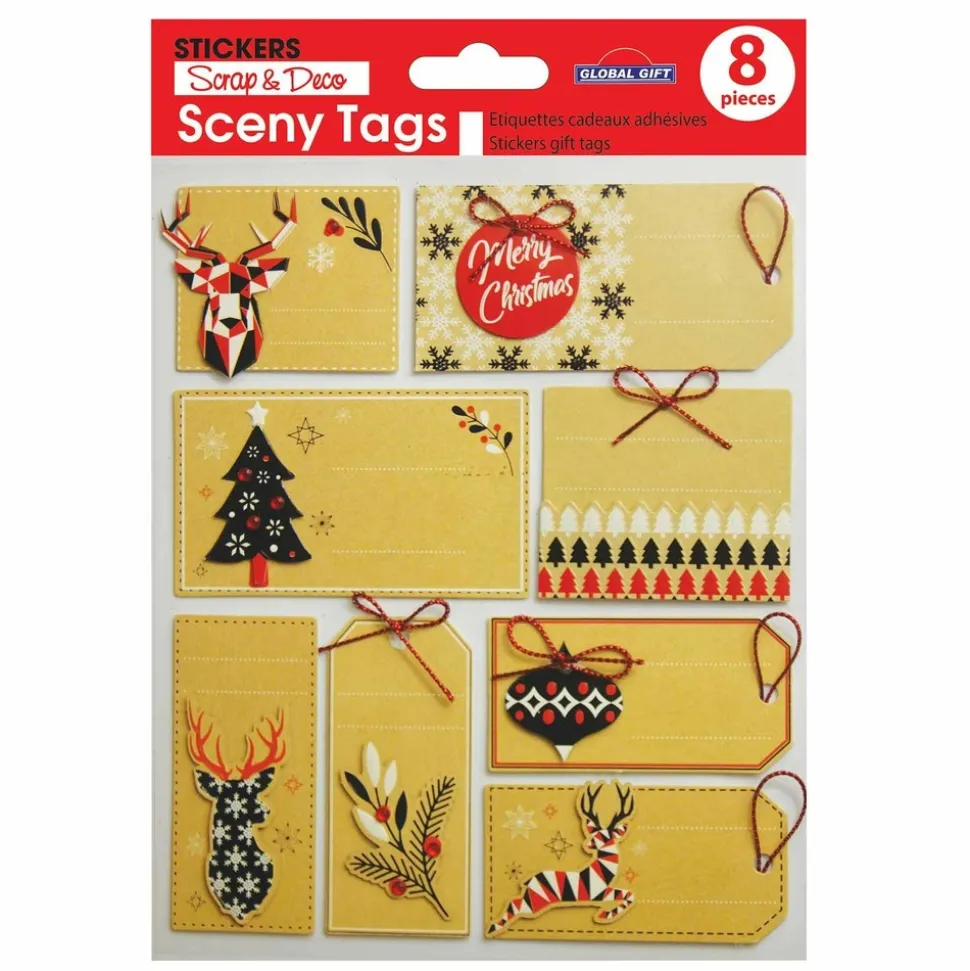 Personnalisez et décorez vos cadeaux de Noël avec ces étiquettes autocollantes 3D sur fond kraft ! Motif scandinave et graphique moderne. Dimensions : 14 x 17 cm.