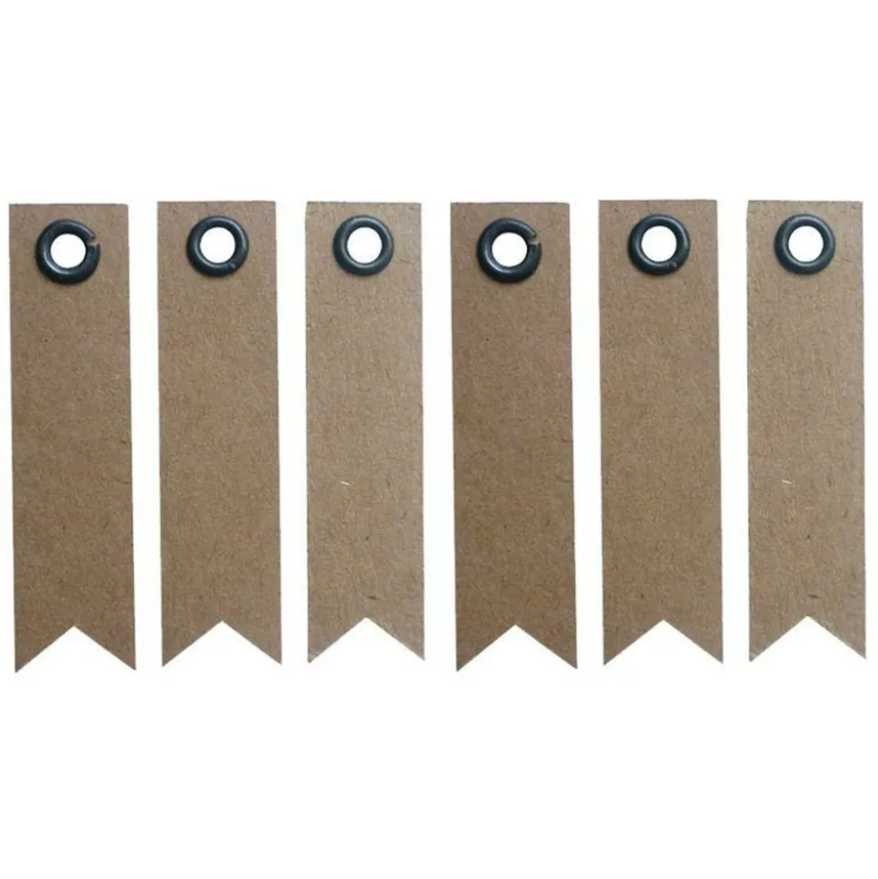 120 étiquettes kraft en forme de fanion, dimension 5 x 1,2 cm.A utiliser pour le scrapbooking, la décoration d’intérieur, pour compléter le service de table d’un mariage, ces petites étiquettes apporteront une unité.Ces étiquettes comprennent un trou avec un œillet marron foncé pour y faire passer une ficelle.Le kit comprend 6 petits sachets de 20 étiquettes kraft perforées.