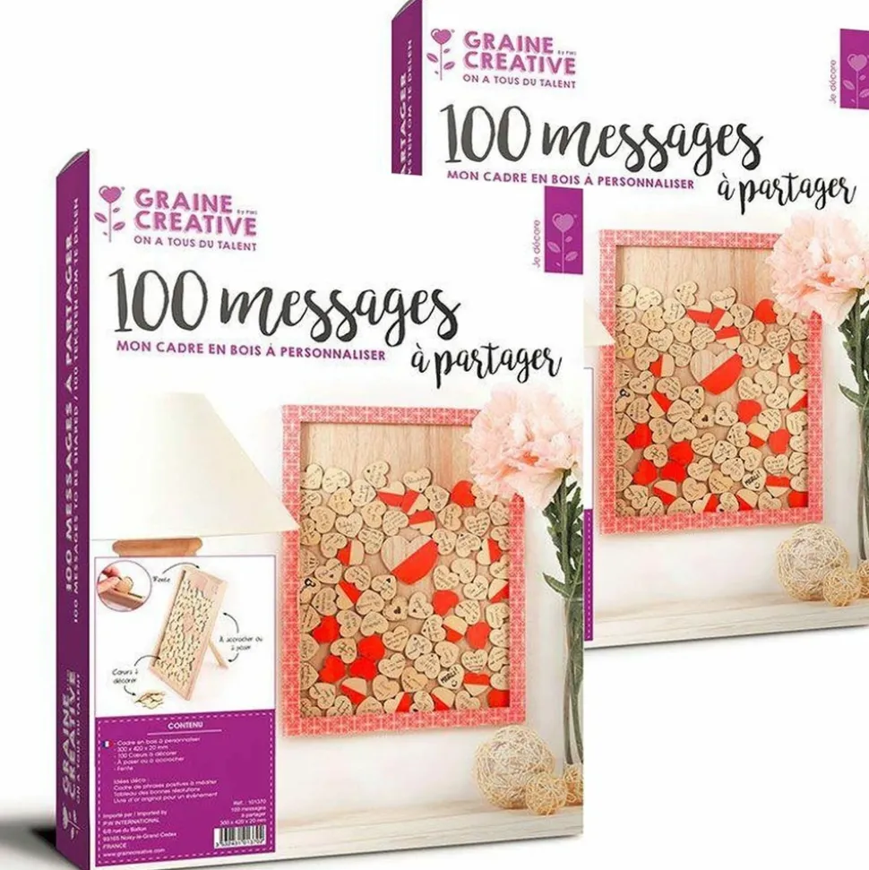 2 cadres muraux en bois coeurs Constituez votre cadre personnalisé avec les messages cérer 100 petits cà customiser. L’ensemble est en bois brut, ce qui donne l’occasion de décorer le cadre et les c