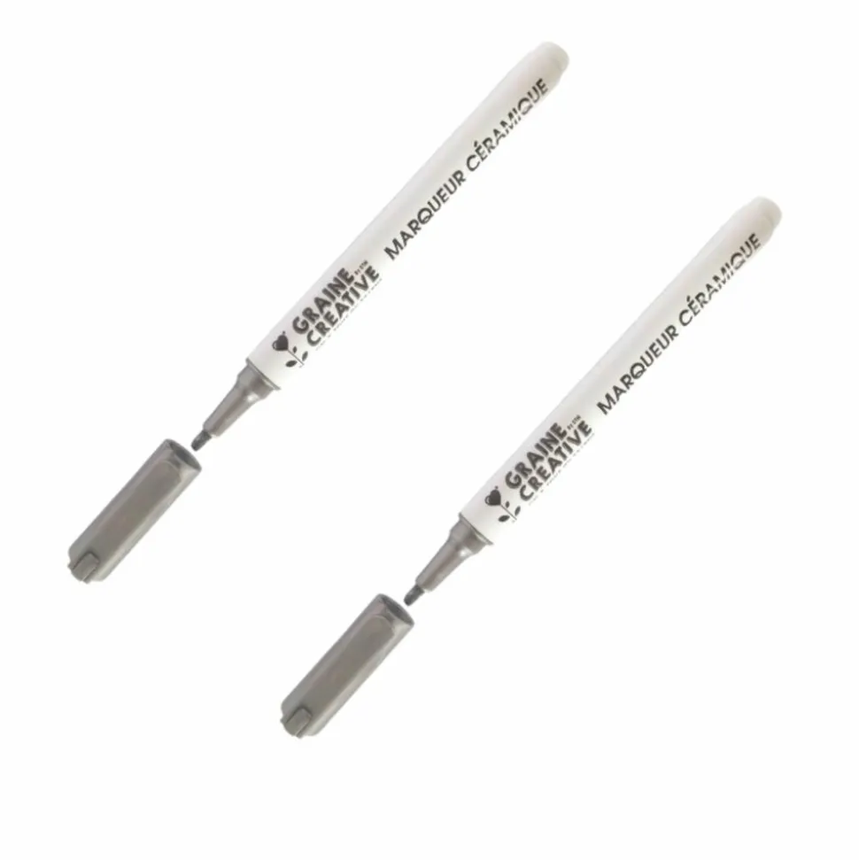 2 marqueurs argentés. Vous souhaitez réaliser vous-même de beaux décors à la main sur votre porcelaine ou votre céramique? Pour un évènement en particulier, une ambiance à créer, le marqueur spécial céramique de couleur argent sera parfait pour customiser votre vaisselle. Vous pouvez même l’utiliser pour faire de jolis photophores ou des vases personnalisés. La couleur argentée apportera une touche chic à votre création! Sa pointe fine et précise vous aidera à réaliser des motifs et des tracés détaillés. L’encre du marqueur argent à céramique est à base d’eau et de pigments inaltérables, sans acide. Mode d’emploi : Bien secouer le marqueur avec son bouchon avant utilisation. Ensuite, pour amorcer le marqueur, appuyer la pointe sur une feuille de papier afin de l’imbiber d’encre. Pour une décoration temporaire, il vous suffit de laisser sécher 72 heures et d’effectuer un lavage léger sans trempage. Si vous souhaitez une décoration permanente, laisser sécher 24 heures et cuire au four à 150°C pendant 35 minutes. Votre décoration résistera alors au lave-vaisselle.