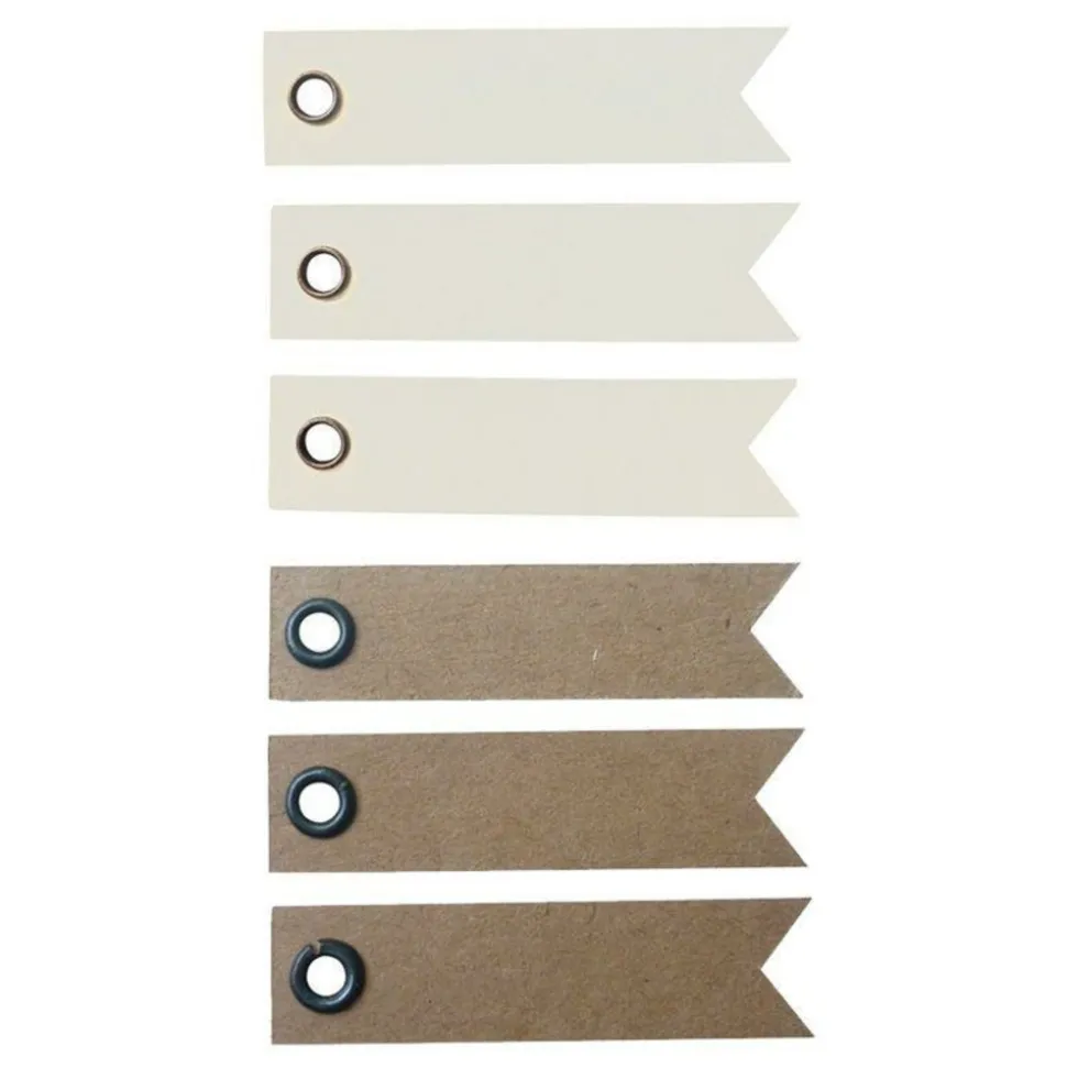 20 étiquettes blanches en forme de fanion, dimension 5 x 1,2 cm. A utiliser pour le scrapbooking, la décoration d’intérieur, pour compléter le service de table d’un mariage. Ces étiquettes comprennent un trou avec un œillet marron foncé pour y faire passer une ficelle. 20 étiquettes kraft en forme de fanion, dimension 5 x 1,2 cm. A utiliser pour le scrapbooking, la décoration d’intérieur, pour compléter le service de table d’un mariage. Ces étiquettes comprennent un trou avec un œillet marron foncé pour y faire passer une ficelle.