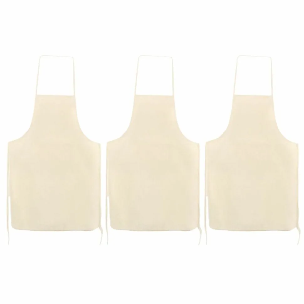 3 tabliers pour adultes en coton. Ce tablier de cuisine ou de bricolage est blanc cassé. De taille adulte (90 x 60 cm), il est composé d’une ficelle tour-de-cou, une ficelle d’attache autour de la taille et d’une petite poche ventrale. Indispensable pour tous les travaux salissants, de la peinture à la céramique, des feutres à la cuisine créative !