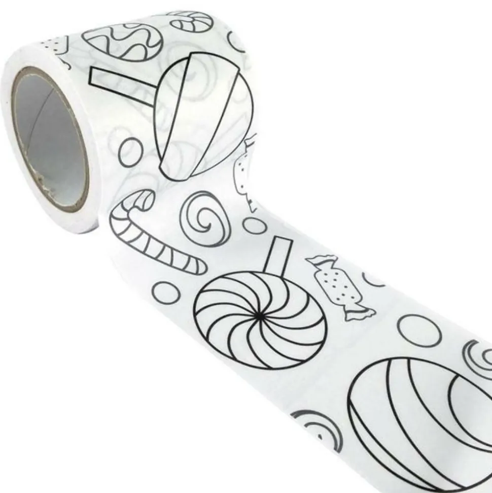 Les enfants ont aussi leur touche déco à apporter dans la maison avec ce masking tape large à colorier et ses motifs sucrés! En plus de pouvoir le coller où ils le souhaitent, ils pourront lui donner des couleurs avec de simples crayons ou feutres. Pas d’inquiètude, le masking tape est entièrement repositionnable! Ils pourront le coller dans leur cahier, sur le mur de leur chambre, sur des objets de décoration comme des cadres photos. Avec ses motifs sucrés, votre enfant pourra colorier sucettes, bonbons et autres déclices! Notre astuce déco? Utiliser le masking tape comme frise sur le mur! Dès que votre enfant sera lasser, il suffira d’en changer en quelques coups de feutres! Le rouleau de masking tape mesure 4,6 cm x 5 m.