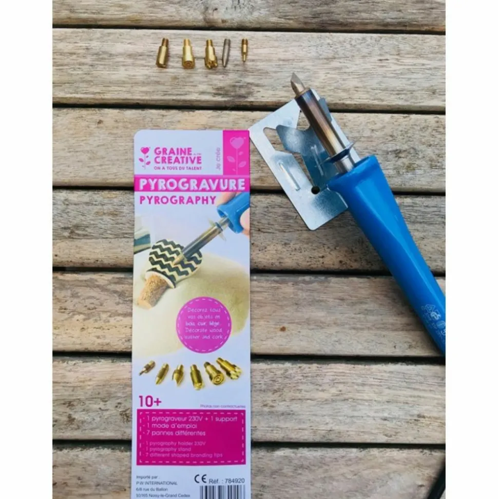 Avec ce pyrograveur personnalisez vos objets. Que ce soit du bois, du liège ou encore du cuir les différents embouts s’adaptent pour créer des motifs fins ou épais.